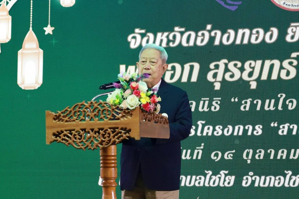 เมื่อวันที่ 14 ต.ค.68 เวลา 17.30 น. ณ เทศบาลตำบลไชโย อ.ไชโย จ.อ่างทอง พลเอกสุรยุทธ์ จุลานนท์ นายกมูลนิธิ "สานใจไทย สู่ใจใต้" นายอารีย์ วงศ์อารยะ ประธานกรรมการบริหารมูลนิธิ ฯ พร้อมคณะ ลงพื้นที่เยี่ยมเยียนครอบครัวอุปถัมภ์โครงการสานใจไทย สู่ใจใต้รุ่นที่ 45 ของจังหวัดอ่างทอง โดยมีนายชวนินทร์ วงศ์สถิตจิรกาล ผู้ตรวจราชการกระทรวงมหาดไทย รักษาการในตำแหน่งผู้ว่าราชการจังหวัดอ่างทอง นางศุทธิกานต์ วงศ์สถิตจิรกาล ผู้รักษาการแทนประธานแม่บ้านมหาดไทยจังหวัดอ่างทอง รองผู้ว่าราชการจังหวัดอ่างทอง หัวหน้าส่วนราชการ นายอำเภอ คณะกรรมการอิสลามประจำจังหวัดอ่างทอง และเยาวชนผู้เข้าร่วมโครงการ ร่วมให้การต้อนรับ พร้อมจัดงานเลี้ยงรับรองครอบครัวอุปภัมภ์และเยาวชนในโครงการ