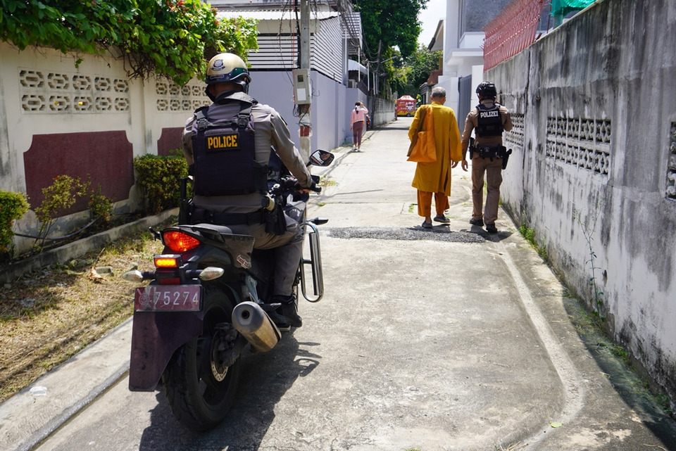 วันที่ 17 ต.ค.68 ผู้สื่อข่าวรายงานว่า เมื่อช่วงสายที่ผ่านมา พระครูปลัดสิทธิวัฒน์ ( หลวงพี่น้ำฝน ) ผู้รักษาการแทน เจ้าอาวาสวัดไผ่ล้อม พระอารามหลวง จังหวัดนครปฐม ได้รับการแจ้งประสานงานจากประชาชนว่ามีชายสูงวัยแต่งกายคล้ายพระ ได้มีการออกมาขอข้าวกิน และขอเงินจากชาวบ้าน บริเวณร้าน ข้าวหมูแดง หงษ์หยก ถนนเทศาซอย 1 เขตเทศบาลนครนครปฐม จ.นครปฐม และได้เดินหลบเข้าไปในศาลเจ้าจีน ที่อยู่ห่างไปไม่ไกล จึงได้มอบหมายให้พระวินยาธิการ วัดไผ่ล้อม ลงพื้นที่ไปตรวจสอบ ที่มูลนิธิเป๋าเก็งเต็ง ซอยบริพัตร ซึ่งอยู่ตรงข้ามกัน และได้ประสานเจ้าหน้าที่ตำรวจสายตรวจรถจักรยานยนต์สถานีตำรวจภูธรเมืองนครปฐม ให้ร่วมเข้าตรวจสอบ