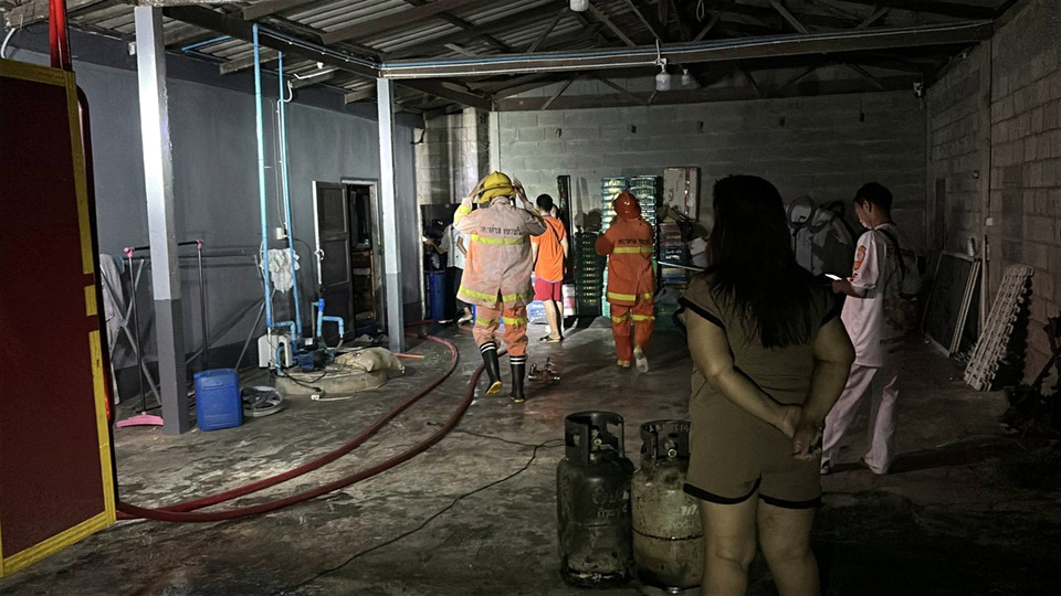 แตกตื่นกลางดึก! ไฟไหม้อู่ทำสีจยย. เสียงระเบิดดังสนั่น 3 ครั้งติดกัน ควันพวยพุ่งไฟลุกท่วม เจ้าหน้าที่ระดมฉีดน้ำดับเพลิงวุ่น เคราะห์ดีไม่มีใครเจ็บหรือเสียชีวิต