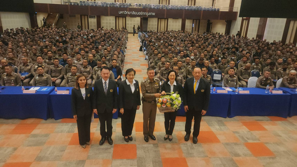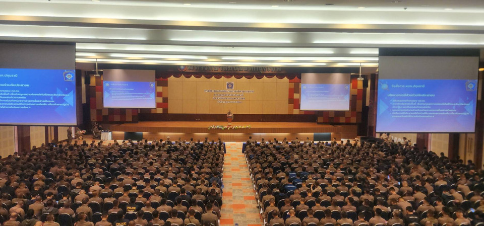 วันที่ 21 ตุลาคม 2568 ที่ห้องประชุมชั้น 5 มหาวิทยาลัยนอร์ทกรุงเทพ วิทยาเขตรังสิต ต.บึงยี่โถ อ.ธัญบุรี จ.ปทุมธานี พล.ต.ต.พีรพล โชติกเสถียร ผบก.ภ.จว.ปทุมธานี มอบนโยบายบริหารจัดการตำรวจภูธรจังหวัดปทุมธานี โดยมี ผู้ช่วยศาสตราจารย์ ดร.ปัทมา รูปสุวรรณกุล รองอธิการบดีอาวุโส มหาวิทยาลัยนอร์ทกรุงเทพ ให้การต้อนรับ พร้อมด้วยสถานีตำรวจภูธรในจังหวัดปทุมธานี ทั้งหมด 15 สถานี เข้าร่วมรับฟังนโยบายประกอบด้วย สภ.เมืองปทุมธานี สภ.ปากคลองรังสิต สภ.ลำลูกกา สภ.คูบางหลวง สภ.คลองสิบสอง สภ.ธัญบุรี สภ.สวนพริกไทย สภ.ประตูน้ำจุฬาลงกรณ์ สภ.คูคต สภ.สามโคก สภ.ลาดหลุมแก้ว สภ.คลองห้า สภ.คลองหลวง และ สภ.หนองเสือ รวมกำลังพลที่เข้ารับฟังนโยบาย 1,002 นาย