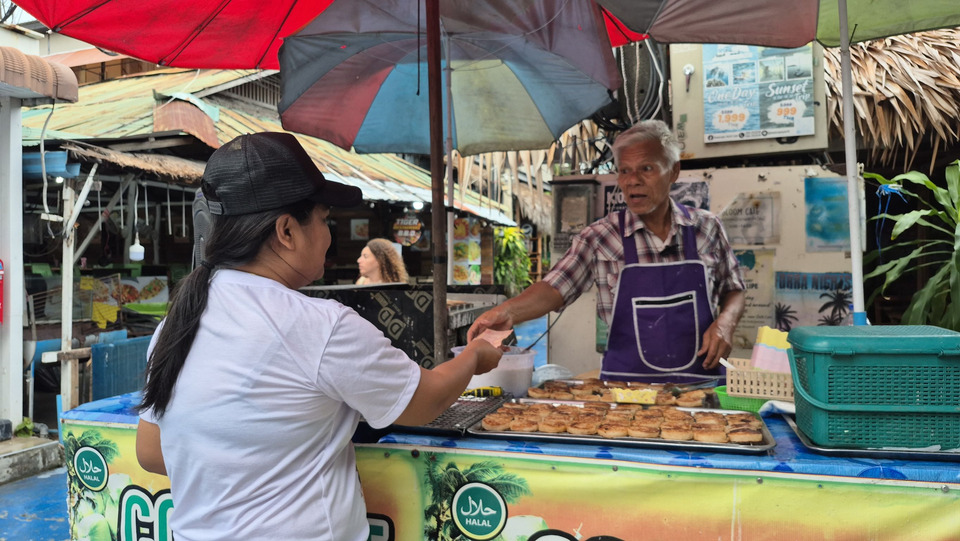 นายหาโหรนเล่าว่า เดิมเคยทำขนมจากสูตรดั้งเดิมที่ใช้ใบจาก แต่เมื่อมาขายบนเกาะหลีเป๊ะซึ่งหาวัตถุดิบยาก จึงดัดแปลงใช้พิมพ์สแตนเลสแทน และคงส่วนผสมแบบพื้นบ้านไว้ครบ ทั้งแป้ง มะพร้าว และน้ำตาลทราย กลายเป็นขนมทรงกลมหน้าตาคล้าย “ขนมบ้าบิ่น” แต่รสชาติไม่หวานจัด หอมมันจากมะพร้าวธรรมชาติ กินร้อน ๆ คือที่สุด!