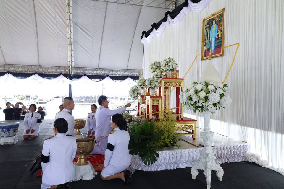 วันที่ 26 ต.ค.68 ที่ลานอเนกประสงค์หน้าเทศบาลเมืองชุมพร อำเภอเมืองชุมพร จังหวัดชุมพร นายเธียรชัย ชูกิตติวิบูลย์ ผู้ว่าราชการจังหวัดชุมพร เป็นประธานในพิธีถวายน้ำสรงพระบรมศพเบื้องหน้าพระฉายาลักษณ์ สมเด็จพระนางเจ้าสิริกิติ์ พระบรมราชินีนาถ พระบรมราชชนนีพันปีหลวง เพื่อให้ข้าราชการและพสกนิกรชาวจังหวัดชุมพรได้ร่วมแสดงความอาลัยและน้อมสำนึกในพระมหากรุณาธิคุณอย่างหาที่สุดมิได้ โดยมีหัวหน้าส่วนราชการ ข้าราชการ พนักงานรัฐวิสาหกิจ ภาคเอกชน และประชาชนชาวจังหวัดชุมพรทุกหมู่เหล่า เข้าร่วมพิธีโดยพร้อมเพรียง