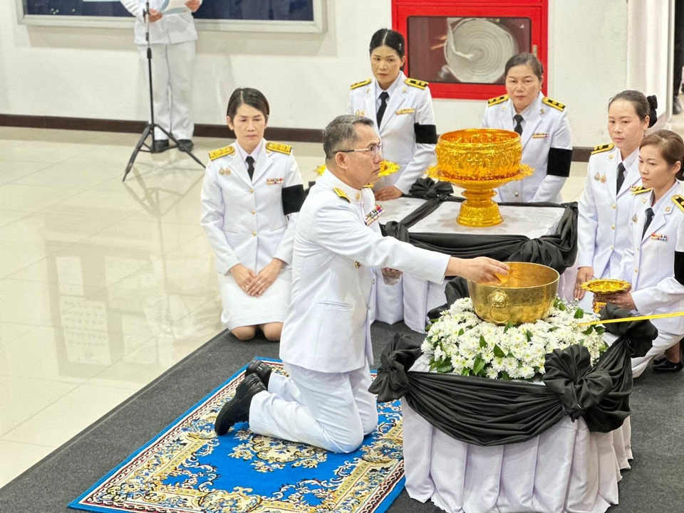 จากนั้นนายสุวรรธณ์ เข็มธนเพ็ชร รองผู้ว่าราชการ จ.กาฬสินธุ์ รักษาราชการแทนผู้ว่าราชการ จ.กาฬสินธุ์ นำทุกภาคส่วน และประชาชนลงนามแสดงความไว้อาลัย เบื้องหน้าพระบรมฉายาลักษณ์สมเด็จพระนางเจ้าสิริกิติ์ พระบรมราชินีนาถ พระบรมราชชนนีพันปีหลวง พร้อมเชิญส่วนราชการ หน่วยงานภาครัฐ ภาคเอกชน และประชาชนเข้าร่วมพิธีถวายน้ำสรงพระบรมศพเบื้องหน้าพระบรมฉายาลักษณ์ และลงนามถวายความอาลัย และให้สถานที่ราชการ รัฐวิสาหกิจ หน่วยงานรัฐ และสถานศึกษาทุกแห่งให้ลดธงครึ่งเสาเป็นเวลา 30 วัน และให้ข้าราชการแต่งกายไว้ทุกข์เป็นเวลา 1 ปี ตั้งแต่วันที่ 25 ตุลาคม 2568 เป็นต้นไป ส่วนประชาชนทั่วไปขอให้แต่งกายไว้ทุกข์ด้วยเสื้อผ้าสีดำตามความเหมาะสม