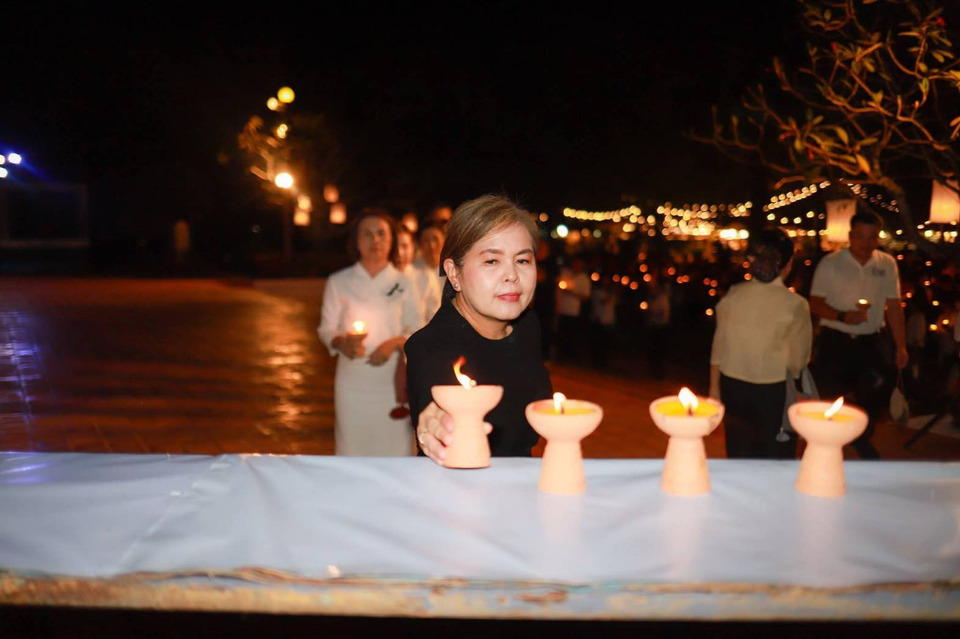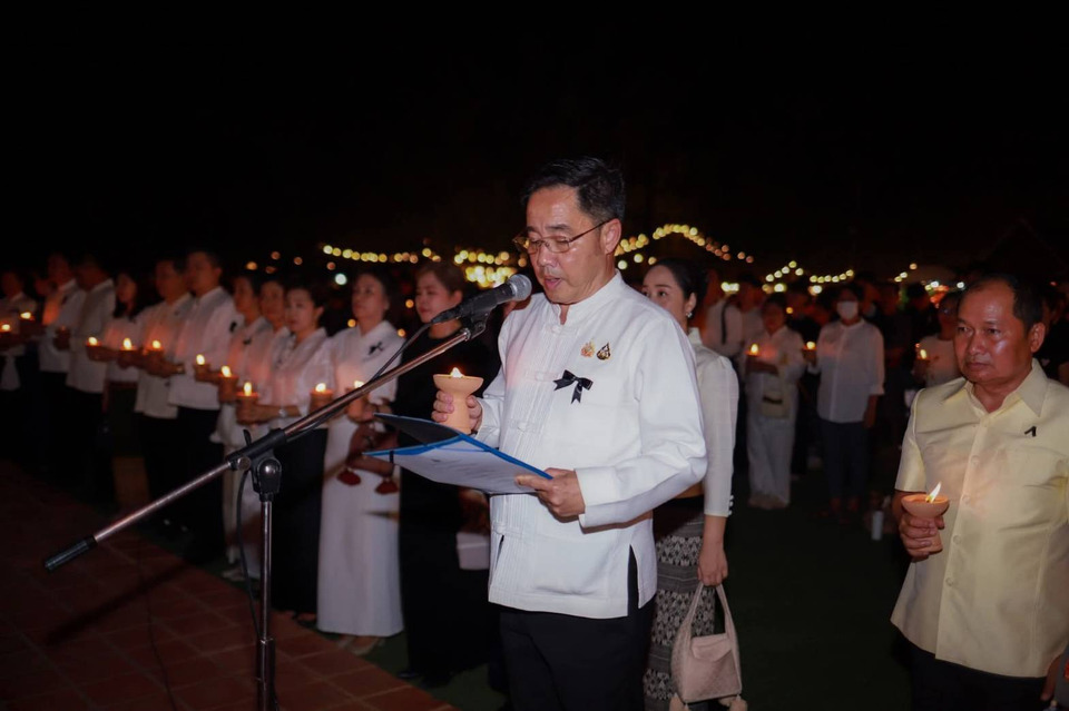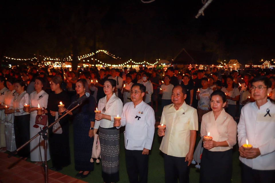 ผู้ว่าฯสุโขทัย นำหัวหน้าส่วนราชการ นักท่องเที่ยวและประชาชนชาวจังหวัดสุโขทัยจุดตะคันถวายอาลัยสมเด็จพระนางเจ้าสิริกิติ์ พระบรมราชินีนาถ พระบรมราชชนนีพันปีหลวง ในงานประเพณีลอยกระทง เผาเทียน เล่นไฟ จังหวัดสุโขทัย ประจำปี 2568
