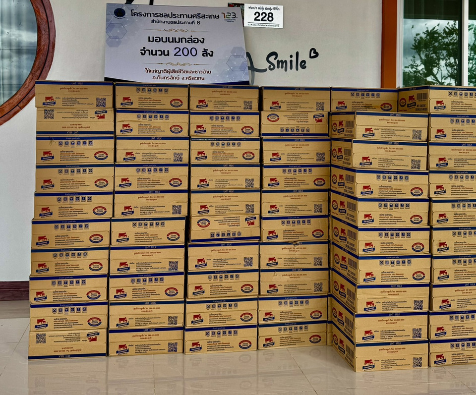 โครงการชลประทานศรีสะเกษ ปันน้ำใจ มอบนมรวม 14,400 กล่อง เยียวยาผู้ประสบภัยน้ำท่วมและครอบครัวผู้สูญเสียเหตุระเบิดชายแดนไทย-กัมพูชา