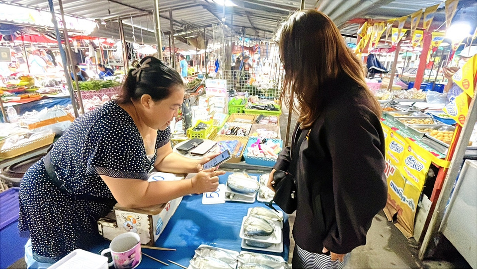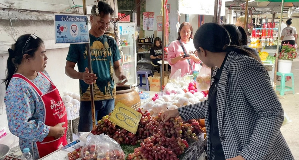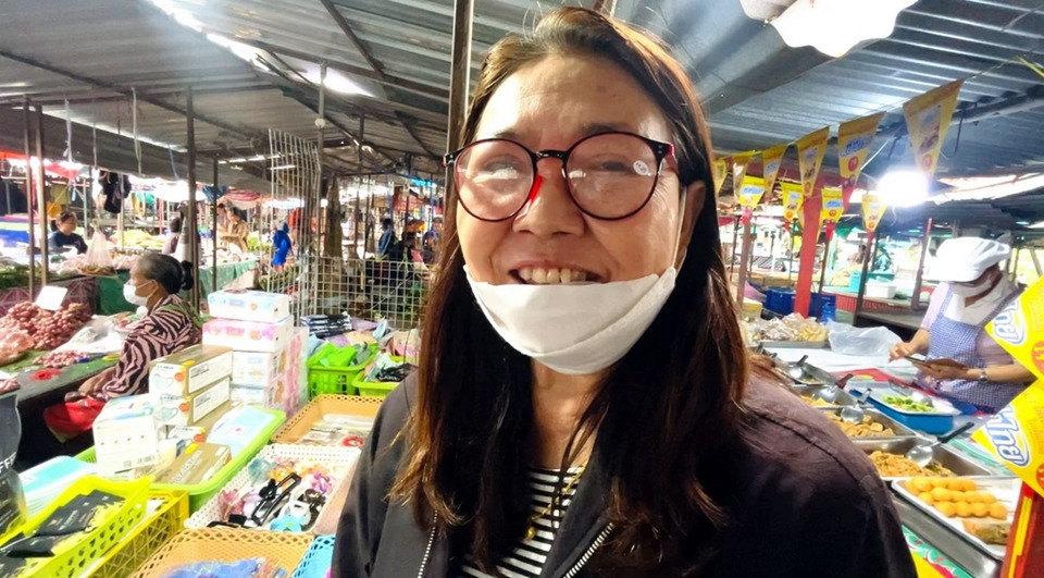 นางสาวพรพิลัย แซ่ตั๊น อายุ 56 ปี แม่ค้าปลาทู เล่าว่าบรรยากาศคึกคักตั้งแต่ตอนเช้า ส่งผลให้ยอดขายดีขึ้น ปัญหาวันแรกคือลูกค้าเติมเงินไม่เป็นตนก็เติมให้ไม่รู้ว่าจะผิดกฎข้อไหนหรือไม่ตนก็ไม่ทราบแต่เห็นต่อหน้าจำเป็นต้องช่วย รวมถึงลูกค้าคนไหนโทรศัพท์มือถือไม่มีอินเตอร์เน็ต เราก็ปล่อยเน็ตให้เพื่อความสะดวก