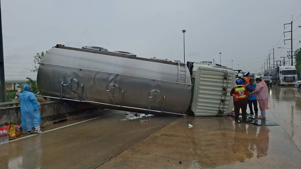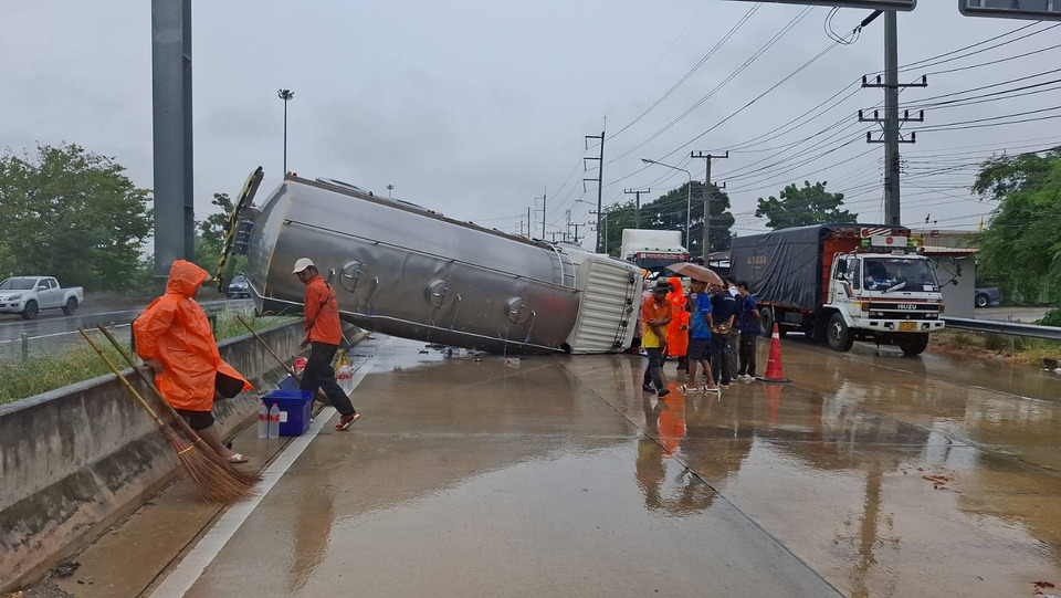 วันที่ 30 ตุลาคม 2568 ศูนย์วิทยุมูลนิธิร่วมกตัญญูจังหวัดปทุมธานี ได้รับแจ้งจากประชาชนว่ามีรถบรรทุก พลิกคว่ำบริเวณ ถนนหมายเลข 9 ใกล้ ต่างระดับลาดหลุมแก้วมุ่งหน้าสามโคก หมู่ 11 ตำบลคูบางหลวง อำเภอลาดหลุมแก้วจังหวัดปทุมธานี จึงเดินทางไปตรวจสอบที่เกิดเหตุ พร้อมด้วย กู้ชีพองค์การบริหารส่วนตำบลคูบางหลวง เมื่อถึงที่เกิดเหตุพบรถ บรรทุกสิบล้อ หมายเลขทะเบียน 72- 0272 สระบุรี บรรทุกน้ำมะพร้าว สภาพพลิกตะแคง ทำให้น้ำมะพร้าวจำนวนมากไหลออกมา ทราบชื่อคนขับ นายลำไพ รัตนนท์ อายุ 59 ปีชาวจังหวัดสระบุรี ไม่ได้รับบาดเจ็บ