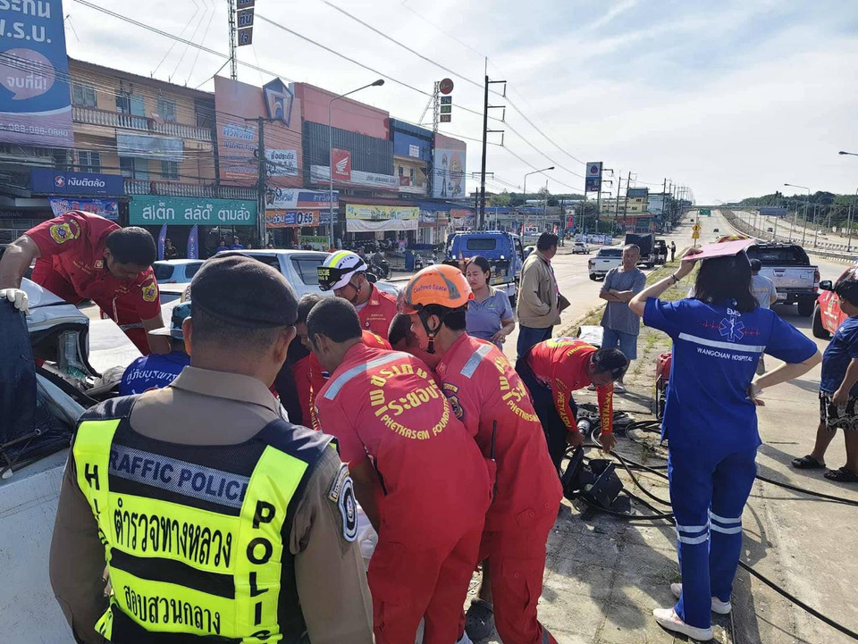 เมื่อเวลา 07.25 น. วันที่ 6 พ.ย. 68 ร.ต.อ.หญิง วิมาศกมล พุ่มเงิน รอง สว.(สอบสวน) สภ.วังจันทร์ จ.ระยอง รับแจ้งเหตุอุบัติเหตุรุนแรงรถชนต่อเนื่อง บริเวณสี่แยกไฟแดงชุมแสง ถนนสาย 344 ขาเข้าแกลง อ.วังจันทร์ จ.ระยอง มีผู้บาดเจ็บและเสียชีวิต จึงรายงานผู้บังคับบัญชา ก่อนรุดตรวจที่เกิดเหตุพร้อมชุดสืบสวน แพทย์เวร รพ.วังจันทร์ และเจ้าหน้าที่กู้ภัยมูลนิธิเพชรเกษมระยอง
