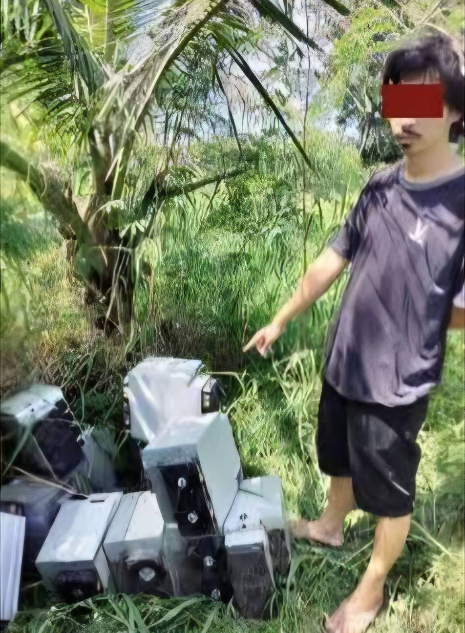 ตำรวจบ้านแพ้ว สมุทรสาคร บุกทลายเหมืองบิทคอยน์แอบขโมยไฟฟ้าในสวนมะพร้าวและบ่อตกปลา จับวัยรุ่น 2 ราย ของกลางคอมฯ ขุดบิทคอยน์เพียบ