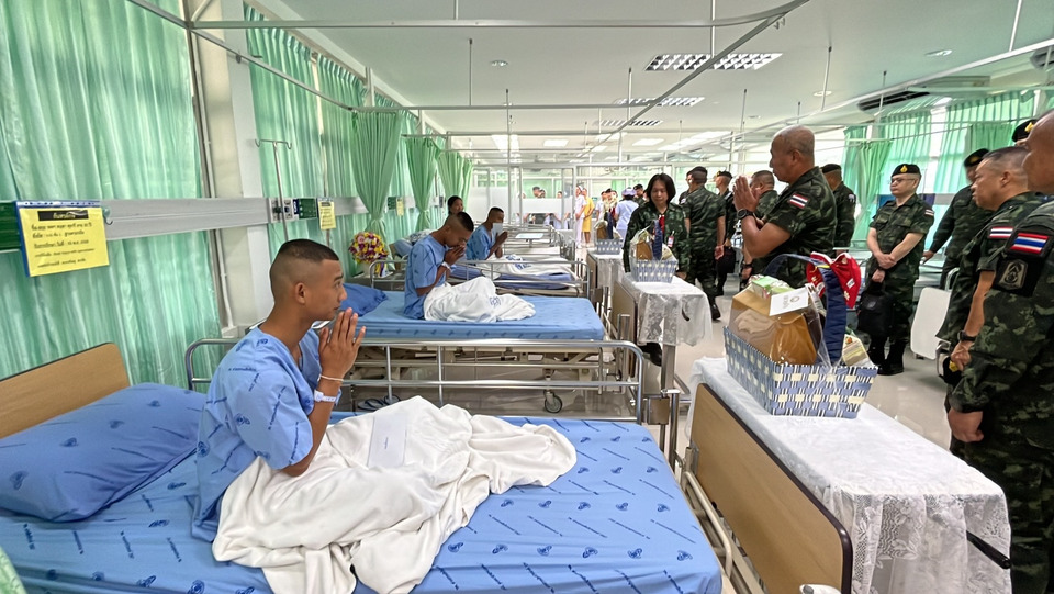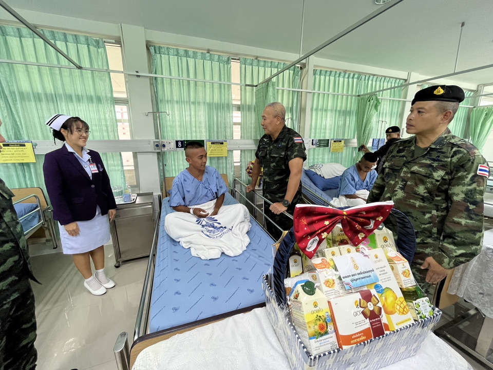 วันที่ 14 พ.ย.68 ที่หอผู้ป่วยวิกฤติโรงพยาบาลทหารค่ายสรรพสิทธิประสงค์ อ.วารินชำราบ จ.อุบลราชธานี พล.อ.พนา แคล้วปลอดทุกข์ ผู้บัญชาการทหารบก เข้าเยี่ยมปลอบขวัญและสอบถามอาการบาดเจ็บของ 4 ทหาร สังกัด ร้อย ร.1611 ที่เหยียบกับระเบิดบริเวณห้วยตามาเรีย อ.กันทรลักษ์ จ.ศรีสะเกษ เมื่อวันที่ 10 พฤศจิกายนที่ผ่านมา ประกอบด้วย จ.ส.อ.เทิดศักดิ์ สมาพงษ์ พลทหารวชิระ พันธนา พลทหารอนุชา สุจารี พลทหารอภิรักษ์ ศรีชมไชย โดยมีแพทย์และพยาบาลผู้ให้การรักษาให้รายละเอียดเกี่ยวกับการรักษาอาการบาดเจ็บทหารทั้ง 4 นาย ซึ่งทหารทั้ง 4 นาย มีอาการและกำลังใจดีขึ้น มีเพียง จ.ส.อ.เทิดศักดิ์ ที่ยังมีอาการปวดแผลที่ขาขวาที่เหยียบกับระเบิด และแพทย์ได้ทำการผ่าตัด เพื่อให้แผลหายดี หลังพูดคุยสอบถามเยี่ยมดูอาการทหารและญาติพี่น้องที่มาเฝ้าดูแลทหารที่บาดเจ็บ พล.อ.พนา แคล้วปลอดทุกข์ ผู้บัญชาการทหารบกได้มอบกระเช้าและเงินไว้ให้ใช้จ่ายระหว่างรักษาตัวให้กับ 4 ทหาร เพื่อเป็นขวัญกำลังใจก่อนเดินทางกลับ