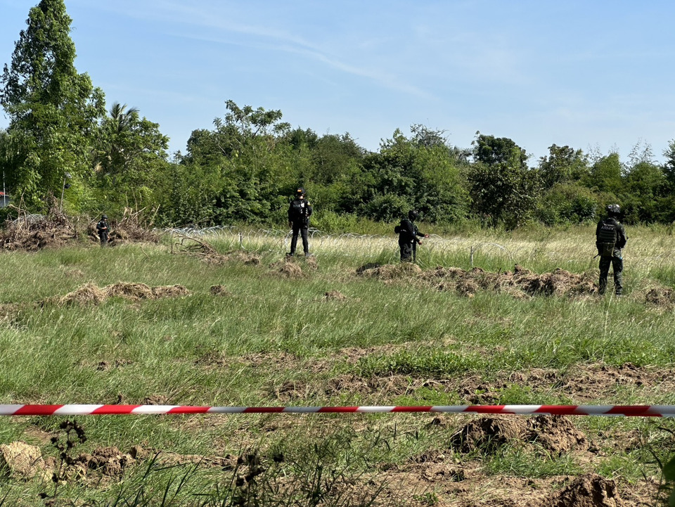 โดยจุดแรกคณะ AOT ได้ลงพื้นที่บริเวณ หลักเขตแดนที่ 34 ร่วมด้วย เจ้าหน้าที่พิสูจน์หลักฐาน จากตำรวจภูธร จ.สระแก้ว ที่ลงพื้นที่ปฏิบัติงานร่วมด้วยโดย สามารถเก็บรายละเอียด สถานที่เกิดเหตุ เหตุการณ์วันที่ 12 พ.ย. เวลา 16.10 น. โดยพบ กระสุนปืน และวิถีกระสุนร่องรอยที่บังเกอร์ เป็นไปได้ชัดเจนว่า ไม่ใช่ปืนเล็กยาว ตามคำให้การของลักษณะเสียง ที่ดังชัดเจนและต่อเนื่อง เนื่องจากระยะฐานของฝ่ายตรงข้าม ห่างจากจุดเกิดเหตุ ประมาณ 100-200 เมตร ขณะเกิดเหตุ มีทหารประจำการ 2 นาย ได้ยิงเตือนขึ้นฟ้า จากนั้น ประกาศแจ้งเตือนให้พี่น้องประชาชนในพื้นที่เข้าหลบในบังเกอร์ตามลำดับ