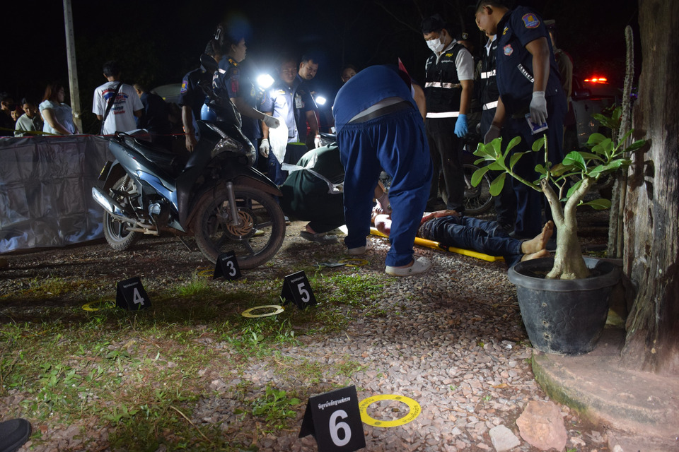 ที่เกิดเหตุบริเวณหน้าร้านขายของชำ พบศพนายณัฐพล ภูเดช อายุ 29 ปี ชาวจังหวัดสระแก้วและพนักงานฟาร์มหมูเอกชน นอนคว่ำหน้าเสียชีวิตใกล้รถจักรยานยนต์ฮอนด้าเวฟ ทะเบียน 1กพ 4181 จันทบุรี ตรวจพบถูกยิงหลายแห่ง ทั้งท้ายทอยทะลุลำคอ หน้าท้อง หน้าอก และท่อนแขนขวา รวมอย่างน้อย 5 นัด