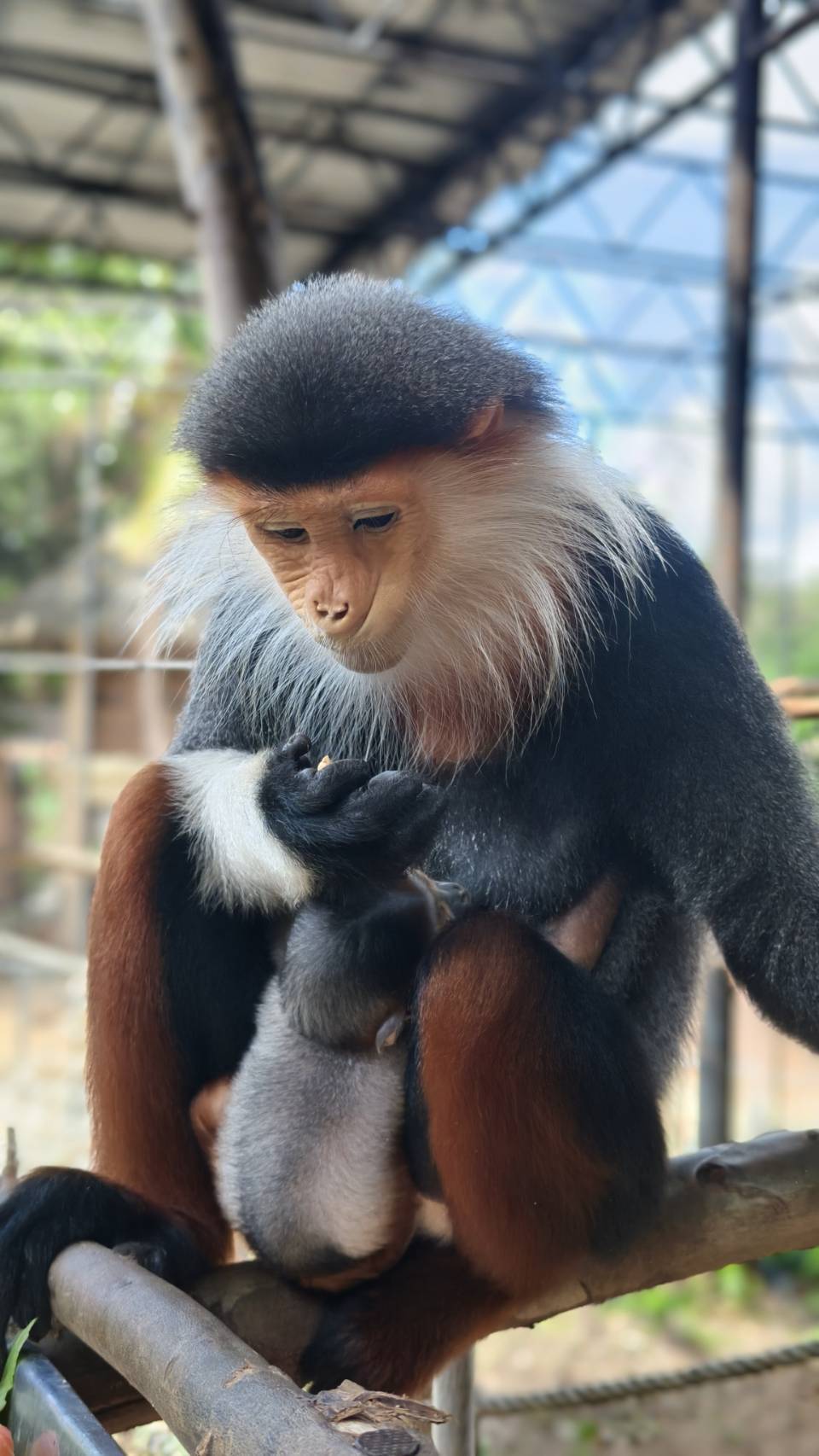 "กล่าวต่อว่าค่างห้าสีจัดอยู่ในบัญชีแดงของสหภาพนานาชาติ เพื่อการอนุรักษ์ธรรมชาติและทรัพยากรธรรมชาติ (IUCN) เป็นสัตว์ป่าที่ใกล้สูญพันธุ์ และได้รับการยกย่องว่าเป็นค่างที่มีความสวยงามที่สุดในโลก มีสีขนตามร่างกายผสานกัน 5 สี ได้แก่ สีดำ สีเทา สีขาว สีน้ำตาลแดง และสีส้มลักษณะสีขนจำแนกได้คือส่วนหลัง กระหม่อม แขนบนด้านนอก และหน้าท้อง เป็นขนสีเทา,หน้าอก แขนบนด้านใน ต้นขาด้านใน–ด้านนอก รวมถึงมือและเท้า เป็นขนสีดำ,หน้าแข้งและน่อง เป็นขนสีน้ำตาลแดง ขณะที่ท่อนแขนล่างและหาง เป็นขนสีขาขนาดร่างกายเพศผู้มีความยาวศีรษะรวมลำตัวเฉลี่ย 61 ซม.เพศเมียเฉลี่ย 54.5 ซม. น้ำหนักเฉลี่ยเพศผู้ 11 กก. และเพศเมีย 8.44 กิโลกรัม ส่วนความยาวหางอยู่ระหว่าง 55.8–76.2 ซม.ฤดูผสมพันธุ์ของค่างห้าสีจะอยู่ระหว่างเดือน ส.ค.-ธ.ค. ระยะตั้งท้องเฉลี่ย 165–190 วัน ออกลูกครั้งละ 1 ตัว โดยเพศเมียจะเข้าสู่วัยเจริญพันธุ์เมื่ออายุ 4 ปี ส่วนเพศผู้มีช่วงวัยสมบูรณ์พันธุ์เมื่ออายุ 4–5 ปี อายุขัยเฉลี่ยประมาณ 25 ปี พบการกระจายพันธุ์ในพื้นที่ภาคกลางของเวียดนาม ภาคตะวันออกเฉียงเหนือของลาว และตะวันออกเฉียงใต้ของกัมพูชา"