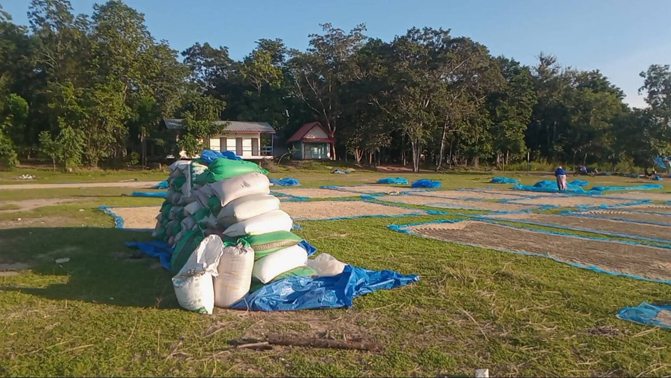 โดยวันนี้ชาวบ้านได้เอาข้าวที่เกี่ยวไว้มาตากให้แห้งที่บ้าน หลังเกี่ยวมาได้ 2-3 วัน ชาวบ้านบางคนต้องเร่งเก็บเกี่ยวก่อนข้าวสุก เเละข้าวได้ชุ่มน้ำจากปัญหาท่วม แม้ขาดทุนก็ยอม เพราะเกรงว่าจะไม่ได้เข้ามาเก็บเกี่ยวหากเหตุการณ์รุนแรงจนต้องอพยพเหมือนคราวก่อน