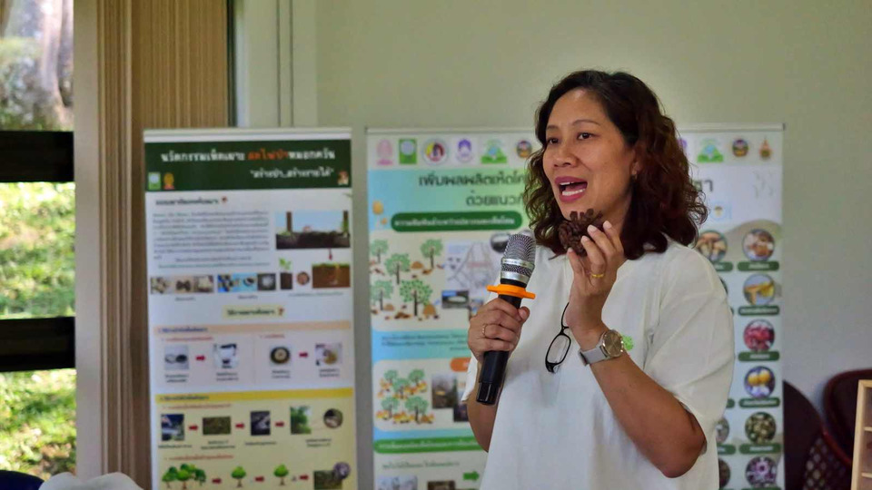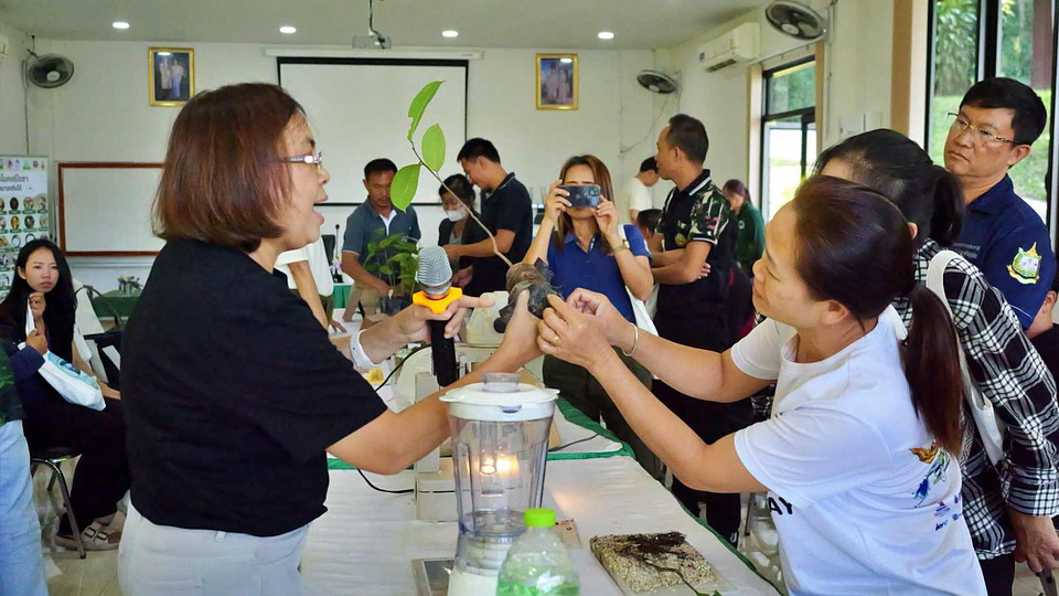 ในการอบรมฯครั้งนี้ มีการสอนการทำเชื้อเห็ดไมคอร์ไรซา พร้อมให้ผู้เข้าอบรมได้ลงมือทำจริงๆ หลังจากอบรมเสร็จได้จากเชื้อเห็ดและต้นยางนาให้ผู้เข้าอบรมได้นำกลับไปปลูก-เพาะในสวนตัวเอง เพื่อจะได้เป็นข้อพิสูจน์ว่าไม่ต้องเผาป่าก็สามารถมีเห็ดเผาะได้