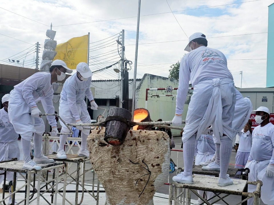 โดยผู้ร่วมงานเดินทางมาถึงพิธีตั้งแต่ช่วงเช้า ก่อนจะเริ่มพิธีบรวงสรวงเทวดาและสิ่งศักดิ์สิทธิ์ ก่อนที่ นายนริศ นิรามัยวงศ์ ผู้ว่าราชการจังหวัดชลบุรี ในฐานะประธานฝ่ายฆราวาส เป็นประธานจุดธูปเทียนบูชาพระรัตนตรัย ตามลำดับพิธีต่อมา พระสงฆ์ได้เจริญพระพุทธมนต์ ก่อนมีการถวายจตุปัจจัยไทยธรรม จากนั้นจึงเป็นพิธีเททองหล่อรูปเหมือน พระราชวัชรปัทมคุณ (หลวงปู่บัวเกตุ ปทมสิโร)