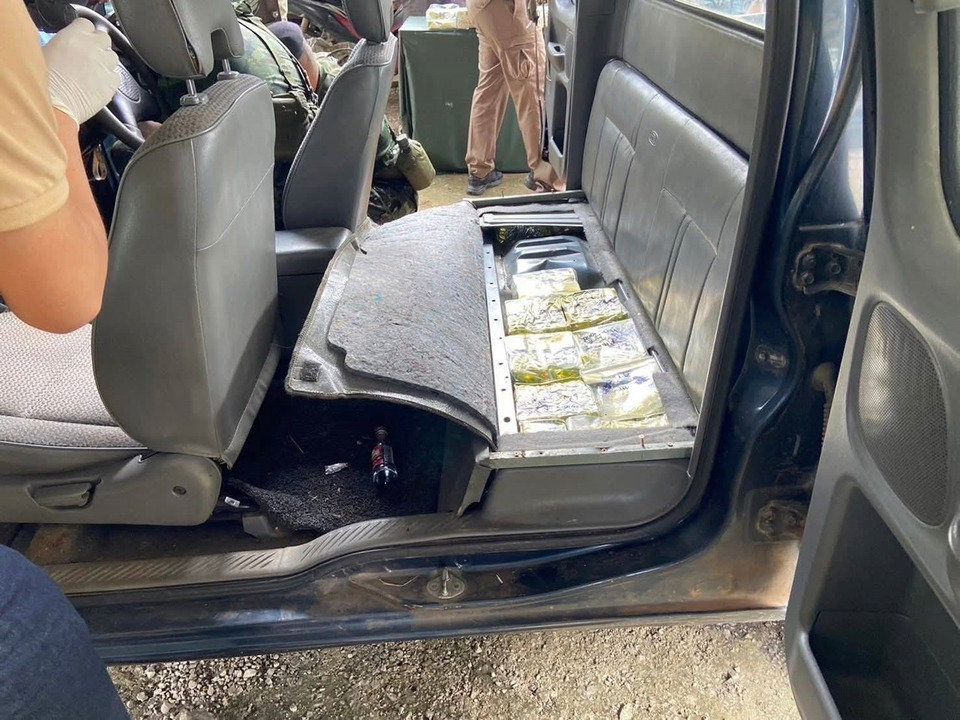 ฉก.ลาดหญ้า–กกล.สุรสีห์ รวบผู้ต้องหาชาวเมียนมาซุกไอซ์ 94 กก. ในรถกระบะดัดแปลง มูลค่ากว่า 11 ล้านบาท คาด่านน้ำเกริ๊ก สังขละบุรี