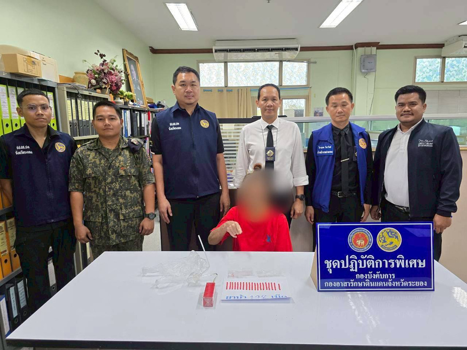 วันที่ 18 พ.ย. 2568 นายไตรภพ วงศ์ไตรรัตน์ ผวจ.ระยอง พร้อมด้วยนายกำธร เวหน รอง ผวจ.ระยอง นายเรืองฤทธิ์ ประกอบธรรม ปลัดจังหวัดระยอง นายอรรถกร ผาสุข ปลัดป้องกันจังหวัด นายไกรยุทธ วิลาวัลย์ พนักงานปกครองชำนาญการ นายจุมพล กาญจนเทียนศรี พนักงานปกครองชำนาญการ, นายยศวัจน์ เทพบัวแก้ว เจ้าหน้าที่ฝ่ายปกครองปฏิบัติงาน และสมาชิกกองร้อย อส.จังหวัดระยอง สนธิกำลังบุกจับ นางเอื้องไพร หรือ “เจ๊แดงมาบตาพุด” อายุ 49 ปี ชาว จ.นครพนม พร้อมของกลาง ยาบ้า 198 เม็ด และผลตรวจปัสสาวะสีม่วง
