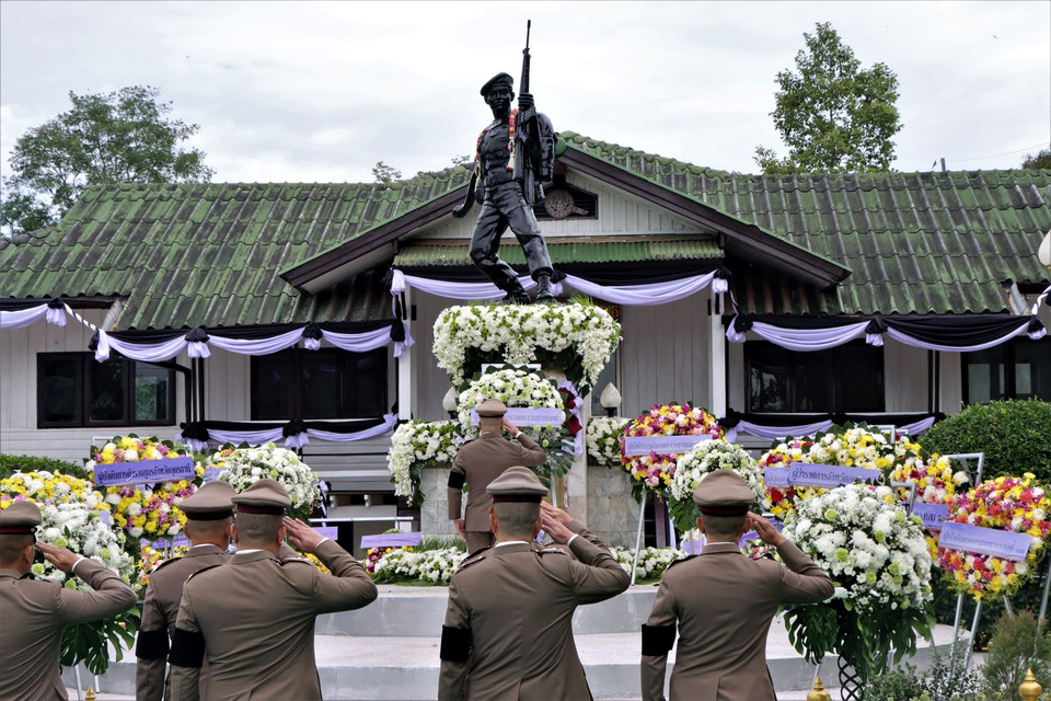 โดยมี พล.ต.ท. ยงเกียรติ มณปราณีต ผบช.ตชด. (เป็นประธานในพิธีฯ) พ.ต.อ.กรณ์ ไชยเสือ ผกก.ตชด.24 (อ่านคำสดุดีวีรกรรม วีรชนนักรบกล้าและประวัติ การก่อตั้งอนุสรณ์สถานฯ ) น.ส.สุภมาส โลหิตานนท์ อัยการจังหวัด นายชวิช ป้องขันธ์ นอ.เมืองอุดรธานี แทน ผวจ.อุดรธานี นางเรวดี วิถี รองนายกเหล่ากาชาด จ.อุดรธานี ผู้แทน ผบ.มทบ. 24 หัวหน้าส่วนราชการ/ผู้แทน ข้าราชการ ผู้บริหาร อปท. ประธานชมรมแม่บ้าน กก.ตชด.24 ภาคเอกชน แขกผู้มีเกียรติ และสื่อมวลชน เข้าร่วมวางพวงมาลา เพื่อแสดงความระลึกถึงและเชิดชูเกียรติวีรชน