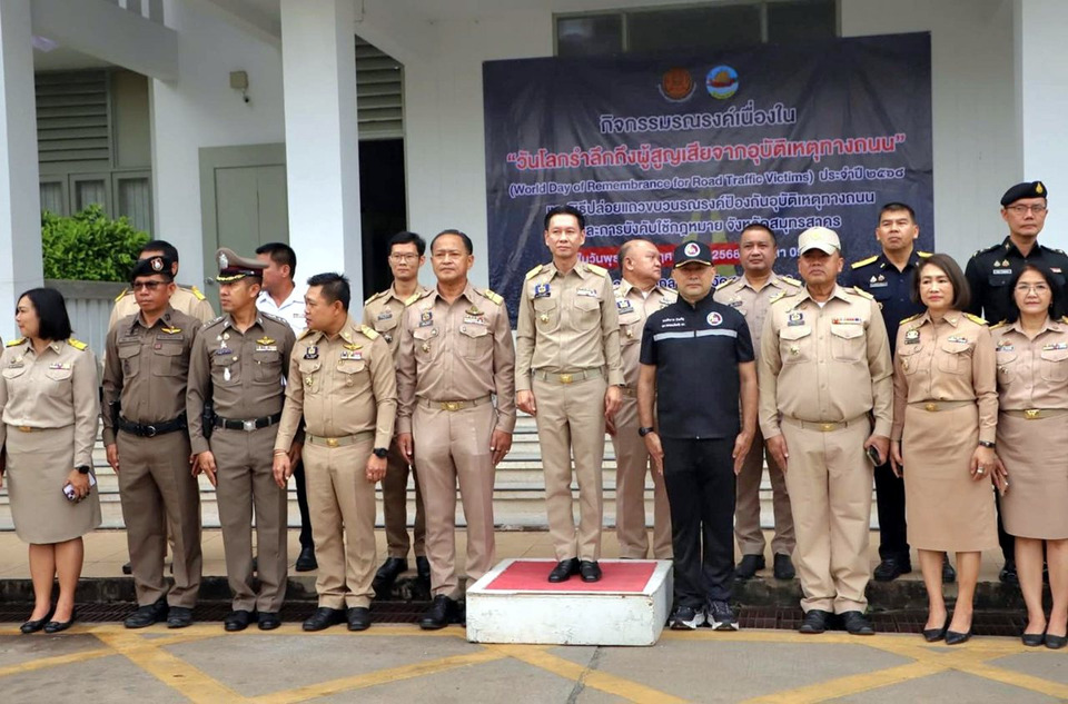 สมุทรสาครจัดกิจกรรมวันโลกรำลึกผู้สูญเสียจากอุบัติเหตุทางถนน พร้อมปล่อยขบวนรณรงค์ขับขี่ปลอดภัย หลังพบปี 2568 เสียชีวิตแล้ว 175 ราย จากอุบัติเหตุ 792 ครั้ง