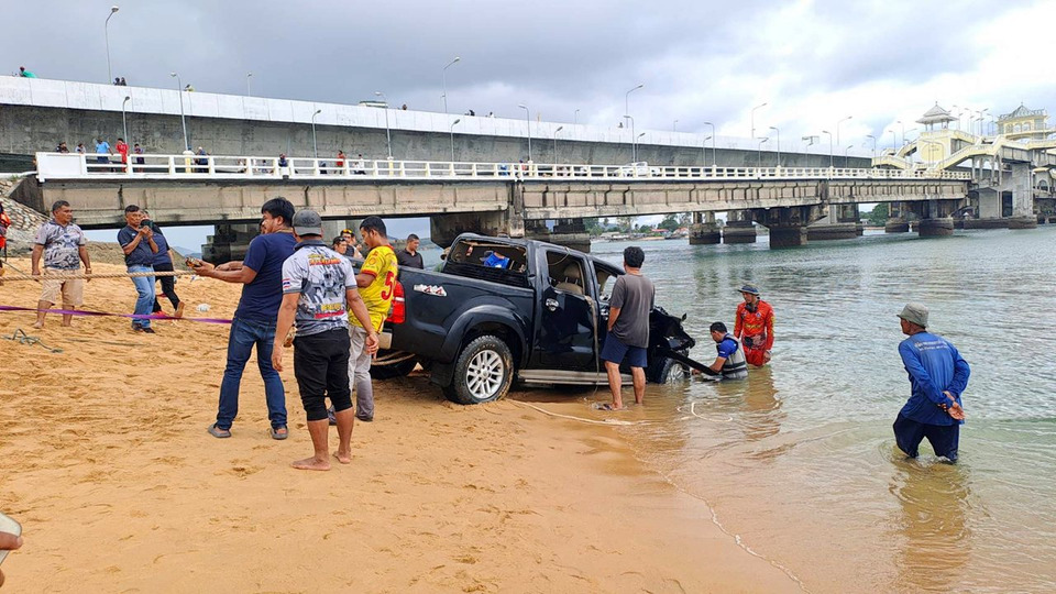 เมื่อวันที่ 19 พ.ย.68 เวลา14.00 น. เจ้าหน้าที่กู้ภัยกุศลธรรมจังหวัดภูเก็ต เจ้าหน้าที่จิตอาสา สารสิน และเจ้าหน้าที่กู้ภัยจังหวัดพังงา ได้เข้าดำเนินการ นำบอลลูนเพื่อเข้ากู้รถยนต์กระบะวีโก้ 4 ประตู สีดำ ทะเบียนสุราษฎร์ธานีที่ โดยมีนายตรีพัฒน์ (ขอสงวนนามสกุล) อายุ 49 ปี ชาว อ.บ้านนาเดิม จ.สุราษฎร์ธานี ขับพุ่งชนราวสะพานสารสินเมื่อกลางดึกของคืนวันที่ 18 พ.ย.68 พร้อมกับ น.ส.กันติชา (ขอสงวนนามสกุล) อายุ 39 ปี ชาว ต.บางงอน อ.พุนพิน จ.สุราษฎร์ธานี จนเสียชีวิตทั้งคู่หลังจากทางเจ้าหน้าที่ได้นำศพทั้งคู่ไปเก็บชันสูตรไว้ที่โรงพยาบาลโคกกลอย พร้อมรอยญาติมาติดต่อรับไปบำเพ็ญกุศล