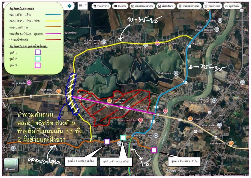 โดยจะติดตั้งเครื่องสูบน้ำเพิ่มเติม เร่งสูบระบายน้ำออกจากจุดน้ำท่วมขังบนถนนสาย 33 และบริเวณชุมชนใกล้เคียง (ตำบลนรสิงห์และตำบลเอกราช) ทั้งนี้ ในส่วนของสำนักงานป้องกันและบรรเทาสาธารณภัยจังหวัดอ่างทอง ได้ประสานกรมป้องกันและบรรเทาสาธารณภัย เพื่อขอรับการสนับสนุนเครื่องสูบส่งระยะไกล ขนาด 24 นิ้ว จำนวน 1 เครื่อง จากศูนย์ป้องกันและบรรเทาสาธารณภัย เขต 16 ชัยนาท มาติดตั้ง ณ บริเวณโรงเรียนเทศบาลวัดโบสถ์วรดิตถ์ หมู่ที่ 3 ตำบลป่าโมก อำเภอป่าโมก สูบน้ำจากจุดน้ำท่วมขังไปลงคลองบางปลากด และใช้เครื่องสูบน้ำ ขนาด 12 นิ้ว จำนวน 2 เครื่องของโครงการชลประทานอ่างทอง สูบต่อไปลงแม่น้ำเจ้าพระยาต่อไป คาดว่าสถานการณ์จะดีขึ้น และสามารถเปิดใช้เส้นทางจราจรได้ภายใน 2-3 วันนี้