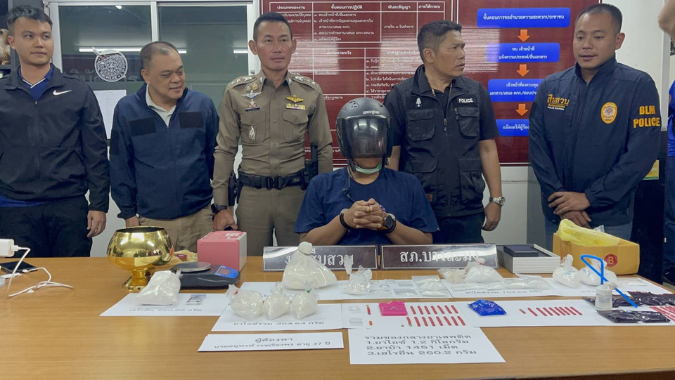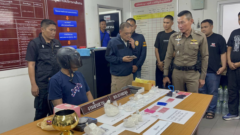 วันที่ 20 พ.ย.68 พ.ต.อ.สราวุธ นุชนารถ ผกก.สภ.บางละมุง , พ.ต.ท.กรณ์พงษ์ สุขวิสิฏฐ์ รอง ผกก.สส. , พ.ต.ท.วุฒิพงษ์ กาสา สว.สส. พร้อมทีมชุดสืบสวน ได้ทำการจับกุม นายอนุพงษ์ (สงวนนามสกุล) อายุ 37 ปี หรือ “นุ พระราม 3” พร้อมของ กลางยาไอซ์ 1.2 กิโลกรัม , เฮโรอีน (ผงขาว) 260 กรัม และ ยาบ้า 1,500 เม็ด โดยสามารถตามไปจับกุมตัวได้ที่ห้องเช่า ในอพาร์ทเม้นท์ แห่งหนึ่ง ย่านยานนาวา กรุงเทพฯ