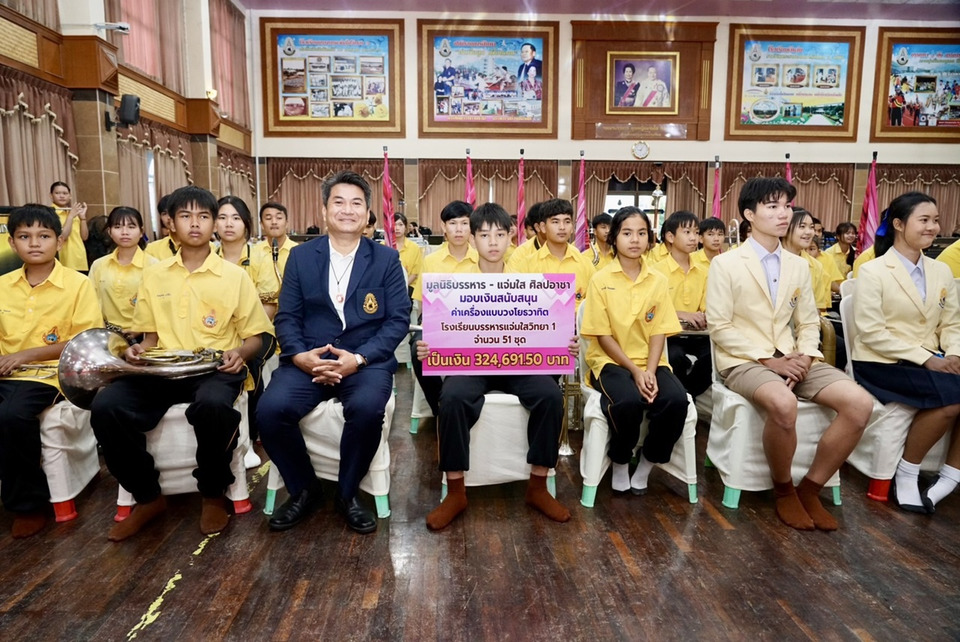 วันที่ 21 พ.ย.68 นายวราวุธ ศิลปอาชา หัวหน้าพรรคชาติไทยพัฒนา อดีตรัฐมนตรีว่าการกระทรวงการพัฒนาสังคมและความมั่นคงของมนุษย์ ในฐานะรองประธานมูลนิธิบรรหาร-แจ่มใส ศิลปอาชา เป็นผู้แทนมูลนิธิ มอบทุนการศึกษาจำนวน 324,691 บาท ให้แก่วงโยธวาทิตโรงเรียนบรรหารแจ่มใสวิทยา 1 จังหวัดสุพรรณบุรี เพื่อสนับสนุนโครงการอัตลักษณ์และเอกลักษณ์ของโรงเรียนกิจกรรมพัฒนาศักยภาพด้านวงโยธวาทิต