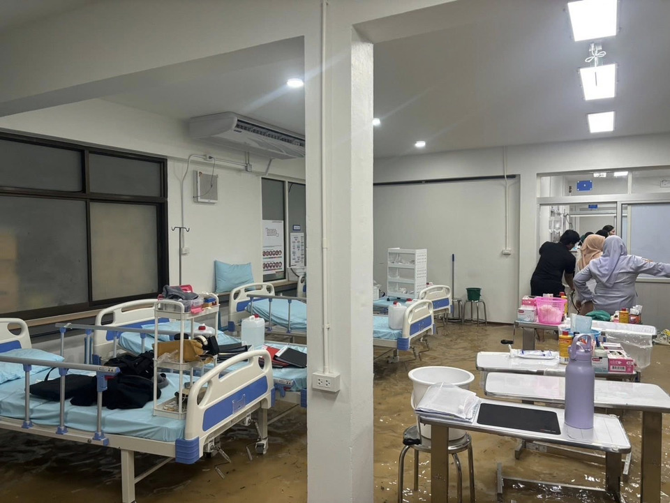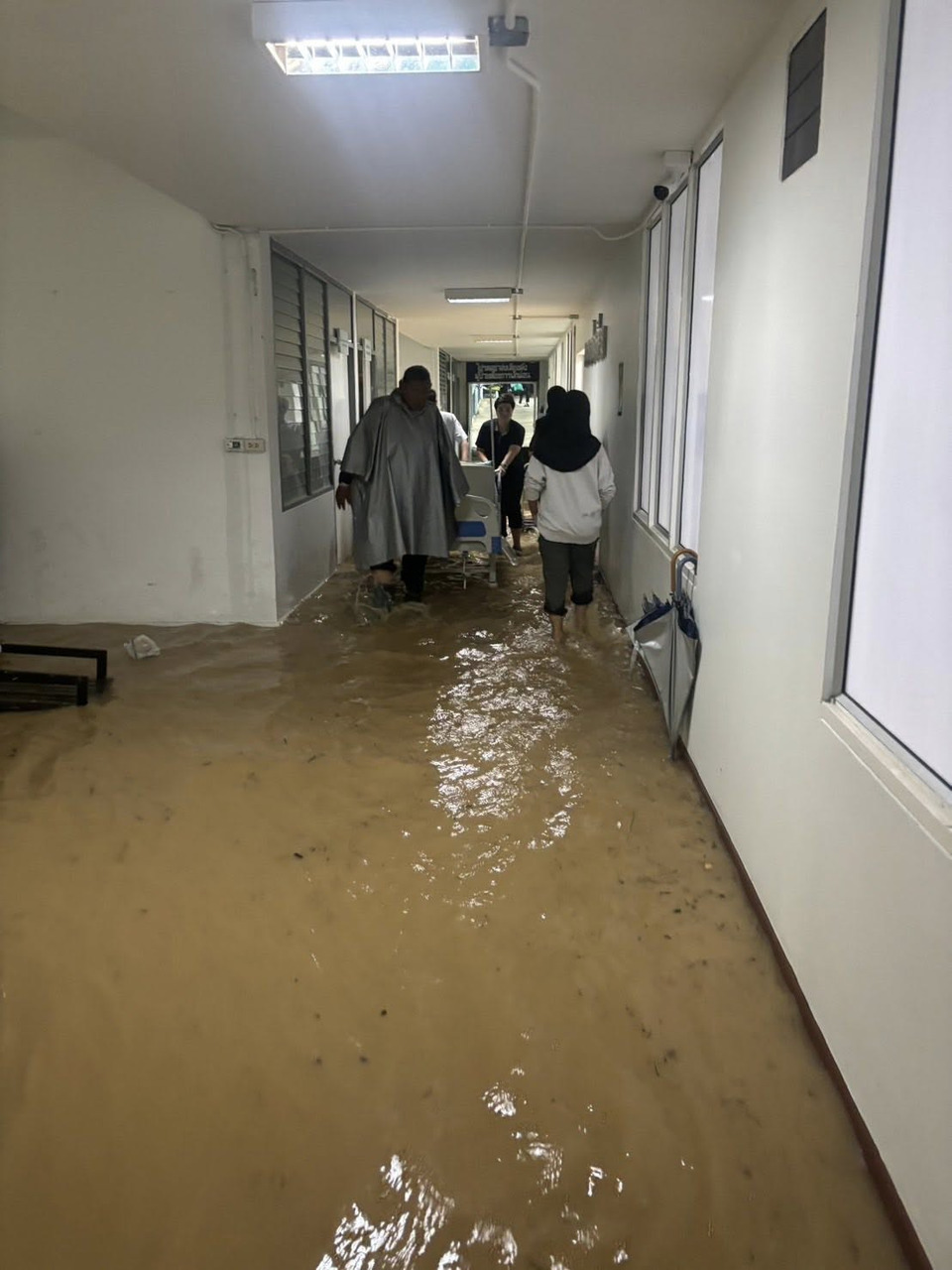 เร่งอพยพผู้ป่วยวุ่น! มวลน้ำไหลทะลักท่วม “โรงพยาบาลสายบุรี”