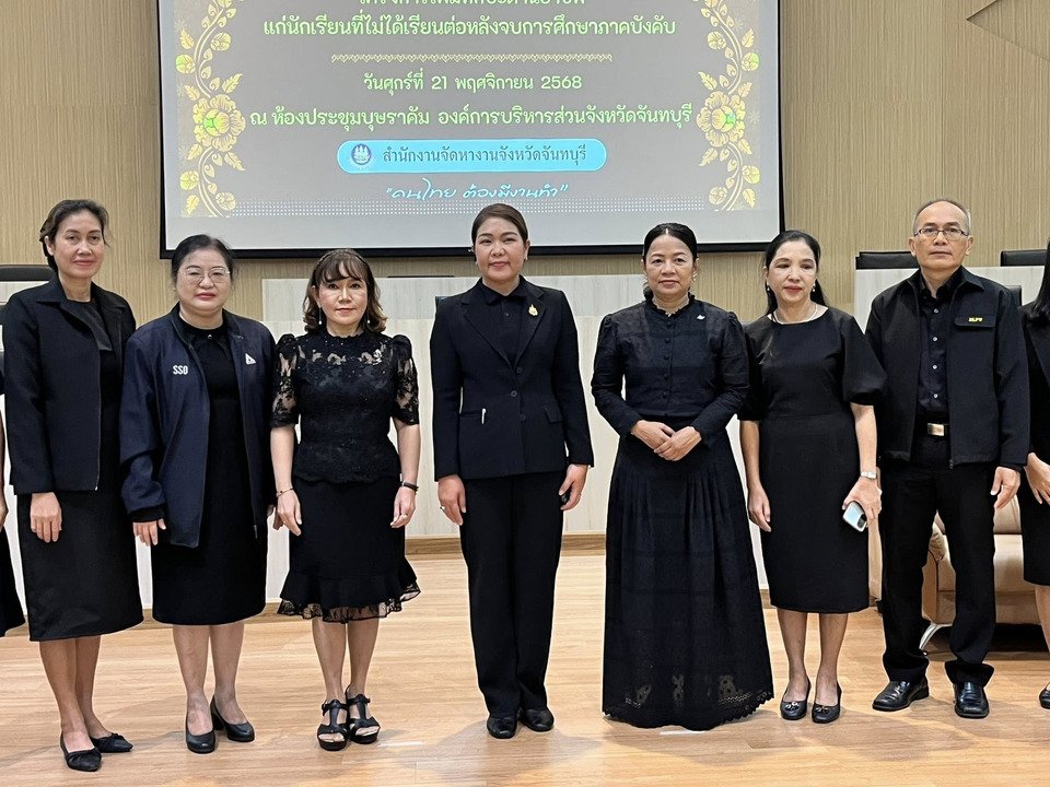 วันที่ 21 พฤศจิกายน 2568 ที่องค์การบริหารส่วนจังหวัดจันทบุรี นางคณิตา ราษฏร์นุ้ย รองผู้ว่าราชการจังหวัดจันทบุรี เป็นประธานเปิดการประชุมชี้แจงโครงการ “เพิ่มทักษะด้านอาชีพแก่นักเรียนที่ไม่ได้เรียนต่อหลังจบการศึกษาภาคบังคับ ประจำปีงบประมาณ พ.ศ. 2569” โดยเป็นความร่วมมือระหว่าง 12 หน่วยงานหลัก ทั้งสำนักงานผู้ตรวจการแผ่นดิน กระทรวงมหาดไทย แรงงาน ศึกษาธิการ พม. และภาคเอกชน เพื่อแก้ไขปัญหาสังคมที่เยาวชนจำนวนมาก ต้องออกจากระบบการศึกษาหลังจบ ม.3 และเข้าสู่ตลาดแรงงานในสถานะ "แรงงานไร้ฝีมือ" ได้รับเพียงค่าจ้างขั้นต่ำ ขาดโอกาสเติบโต โครงการนี้มุ่งเน้นการเปลี่ยนผ่านเยาวชนกลุ่มเป้าหมาย ให้ "มีทักษะ มีงาน มีรายได้ และมีอนาคต" โดยกลุ่มเป้าหมายหลักคือ นักเรียนที่กำลังจะจบ ม.3 และไม่ได้เรียนต่อ , ผู้ที่จบ ม.3 ไม่เกิน 2 ปี อายุไม่เกิน 25 ปี ที่ยังไม่ได้ประกอบอาชีพ