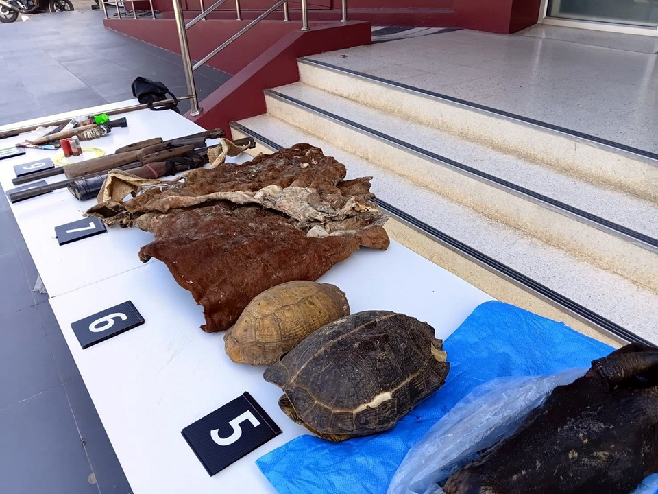 ภายหลังการสืบสวนของเจ้าหน้าที่ทราบว่า ได้พบข้อมูลมีการลักลอบล่าสัตว์ป่าสงวนและคุ้มครองแล้วนำซากมาครอบครองจากบ้านเป้าหมาย ซึ่งเป็นบ้านพักชั้นเดียวสภาพทรุดโทรม ได้พบชายอายุประมาณ 38 ปี แสดงตัวต่อเจ้าหน้าที่ และยินยอมให้นำตรวจสอบภายในบ้าน พบซากสัตว์ป่าและอุปกรณ์ที่ใช้ในการกระทำความผิดจำนวนมาก ประกอบด้วย หัวเลียงผาสด บรรจุในถุงกระสอบวางอยู่ในตู้ทำความเย็น เนื้อเลียงผา บรรจุในถุงพลาสติกวางอยู่ในตู้ทำความเย็น หนังแมวดาว อุ้งตีนตะกวด ขาเก้ง เต่าเหลือและเต่าหก งูจงอาง หนังเก้ง จำนวน 2 ผืน อาวุธปืนลูกซอง จำนวน 2 กระบอก เครื่องกระสุนปืนลูกซองเบอร์ 12 จำนวน 4 ลูก ลำกล้องปืนไทยประดิษฐ์ จำนวน 2 ลำกล้อง มีดพก จำนวน 6 เล่ม