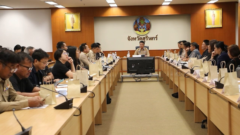 วันที่ 24 พ.ย.68 ที่ห้องประชุมศาลากลางจังหวัดสุรินทร์ นายประภาส ศรีจันทร์เวียง รองผู้ว่าราชการจังหวัดสุรินทร์ เป็นประธานการประชุม พร้อมด้วยนายปกรณ์ มุ่งเจริญพร ส.ส.สุรินทร์ พรรคภูมิใจไทยในฐานะประธานคณะกรรมาธิการการป้องกันและบรรเทาผลกระทบจากภัยธรรมชาติและสาธารณะภัย สภาผู้แทนราษฎร และป้องกันและบรรเทาสาธารณภัย จ.สุรินทร์ พร้อมส่วนราชการที่เกี่ยวข้อง เรื่องการป้องกัน เฝ้าระวัง และควบคุมโรคในสัตว์โค-กระบือที่เป็นโรคปากและเท้าเปื่อยและล้มตายไปแล้วกว่า 300 ตัวในพื้นที่จังหวัดสุรินทร์ โดยนายสัตวแพทย์อภิชัย นาคีสังข์ ปศุสัตว์จังหวัดสุรินทร์ รายงานแจ้งในที่ประชุมว่าการระบาดของโรคปากและเท้าเปื่อยในสัตว์มีโค-กระบือ ในหลายพื้นที่ ทั้งในพื้นที่อำเภอเมืองสุรินทร์ อำเภอสังขะ จังหวัดสุรินทร์ แล้วลามไปอีกหลายพื้นที่ 5 อำเภอจังหวัดสุรินทร์ จาก 17 อำเภอ โดยการเกิดโรคมีสาเหตุจากหลายปัจจัย ซึ่งทางการได้แจ้งให้หน่วยงานในแต่ละพื้นที่ได้มีการเฝ้าระวังและเข้าไปฉีดพ่นยาฆ่าเชื้อเพื่อป้องกันการระบาดของโรคในสัตว์อย่างเร่งด่วนแล้วในขณะนี้ แต่ยังไม่สามารถควบคุมการระบาดได้ในขณะนี้