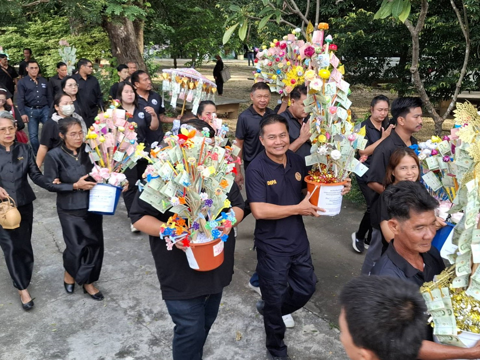 พช.อ่างทองจัดกิจกรรมทอดผ้าป่าสมทบกองทุนแม่ของแผ่นดิน รวมเงินบริจาค 584,407 บาท หนุนหมู่บ้านป้องกันและแก้ไขปัญหายาเสพติด ตามนโยบายมหาดไทย เนื่องในวันกองทุนแม่ของแผ่นดิน