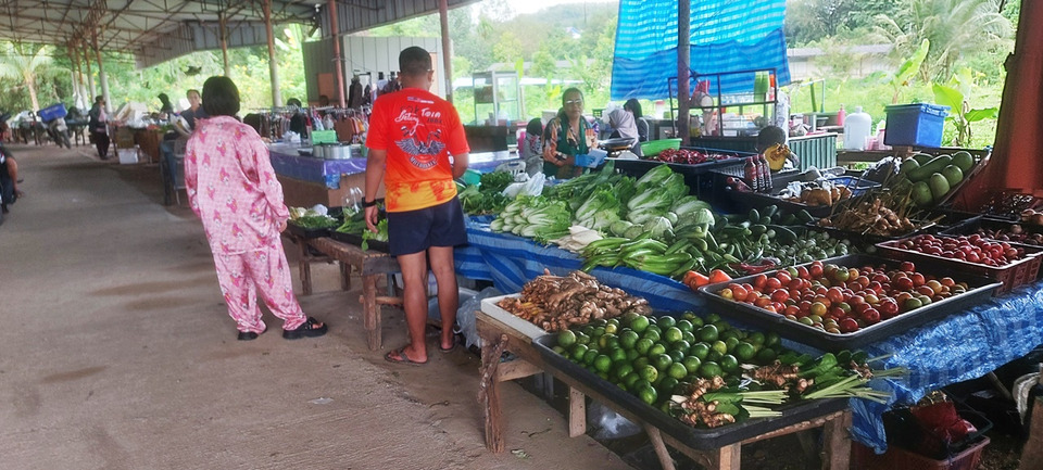 ส่วนภายในตลาดนัดที่จำหน่ายของสด พบว่า มีพ่อค้า แม่ค้า ต่างนำสินค้ามาขายน้อยมาก ส่วนใหญ่จะปิดร้านเพราะได้รับผลกระทบจากน้ำท่วม หนักสุดคือไม่สามารถนำเข้าวัตถุดิบได้ ผักสดที่มาจากภาคกลาง หรือตลาดหาดใหญ่ จ.สงขลา ไม่สามารถมาส่งผักที่ตลาดได้ เนื่องจากเส้นทางขนส่งถูกน้ำท่วม