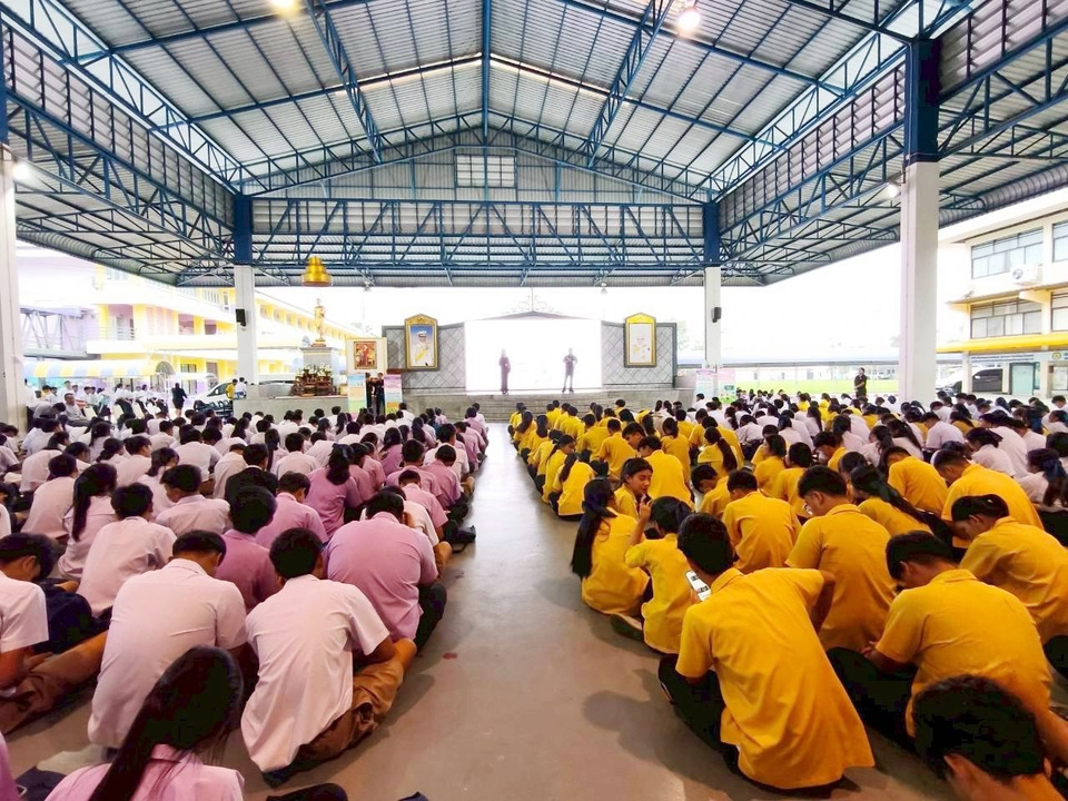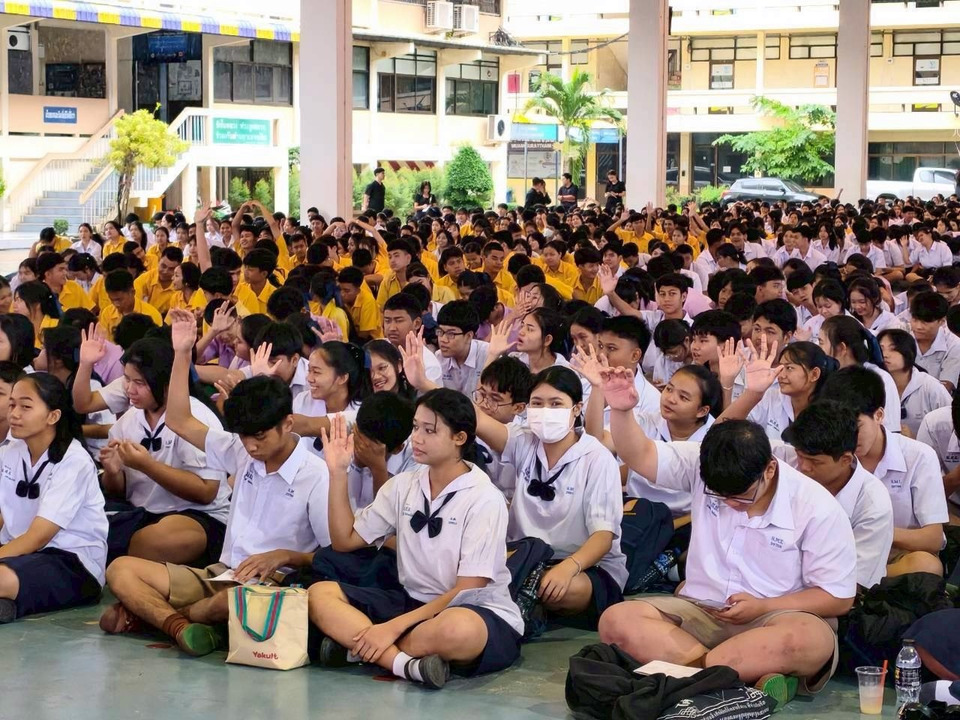 พม.สุราษฎร์ธานีจัดกิจกรรมรณรงค์ยุติความรุนแรงต่อเด็ก สตรี และบุคคลในครอบครัว ภายใต้แนวคิด “ยุติความรุนแรงทางดิจิทัล” สร้างความตระหนัก ปรับค่านิยมสังคม พร้อมปลูกฝังทัศนคติที่ถูกต้องในโรงเรียนเมืองสุราษฎร์ธานี