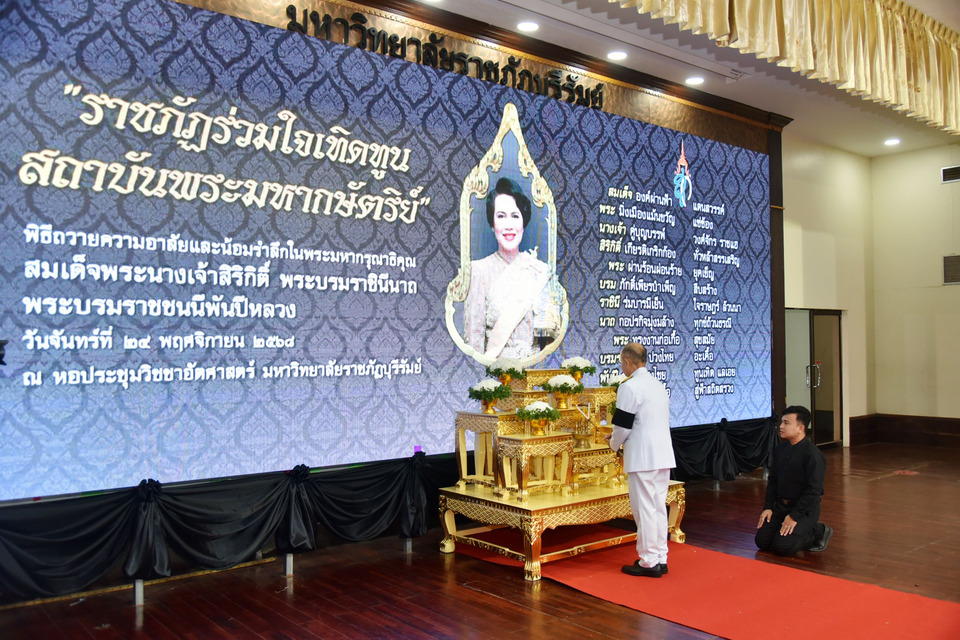 มหาวิทยาลัยราชภัฏบุรีรัมย์ จัดพิธีถวายความอาลัยและน้อมรำลึกในพระมหากรุณาธิคุณ สมเด็จพระนางเจ้าสิริกิติ์ พระบรมราชินีนาถ พระบรมราชชนนีพันปีหลวง ‘ราชภัฏร่วมใจเทิดทูนสถาบันพระมหากษัตริย์’