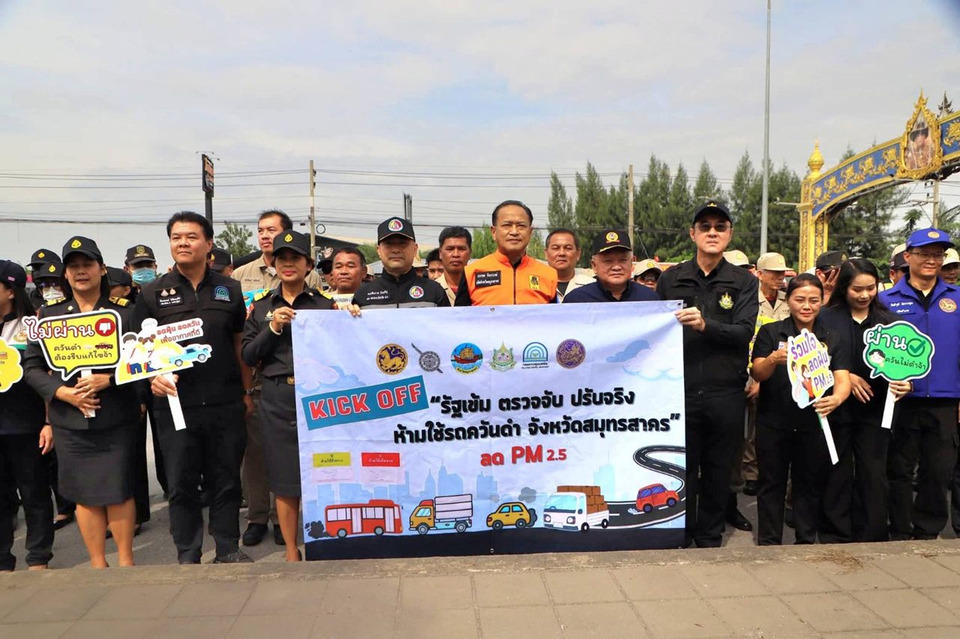 สมุทรสาคร Kick Off มาตรการห้ามรถควันดำวิ่งบนถนน ตรวจเข้ม 3 อำเภอ ลดปัญหาฝุ่น PM2.5 กระทบสุขภาพประชาชน