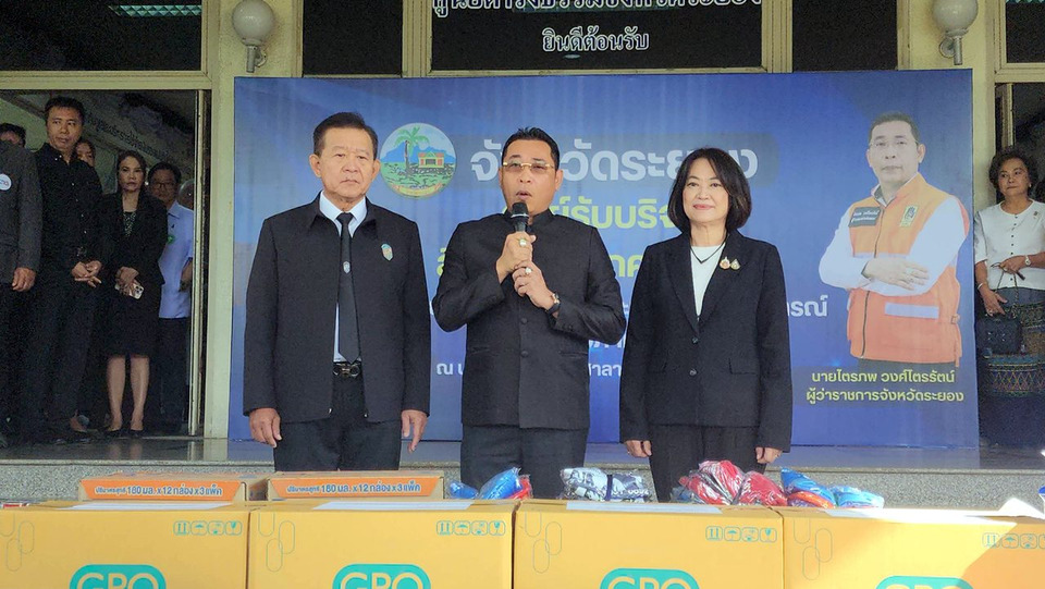 เมื่อเวลา 09.00 น.วันที่ 26 พ.ย.68 ที่บริเวณหน้าอาคารศาลากลางจังหวัดระยอง ต.เนินพระ อ.เมือง จ.ระยอง ผู้สื่อข่าวรายงานว่า นายไตรภพ วงศ์ไตรรัตน์ ผู้ว่าราชการจังหวัดระยอง พร้อมด้วยนายกัฬชัย เทพวรชัย น.ส.สลารีวรรณ ทัพทวี รองผู้ว่าราชการจังหวัดระยอง ได้ร่วมรับมอบสิ่งของ เครื่องอุปโภค-บริโภคจากหน่วยงานภาครัฐ ภาคเอกชน และ ปชช.ที่หลั่งไหลมาบริจาคจำนวนมาก หลังจังหวัดระยอง ได้มีการตั้งศูนย์เปิดรับบริจาคสิ่งของเครื่องอุปโภค-บริโภค เพื่อช่วยเหลือผู้ได้รับผลกระทบจากสถานการณ์น้ำท่วมภาคใต้ขึ้นมา