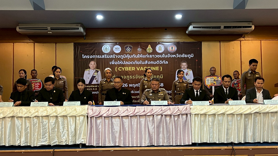 ตำรวจภูธรจังหวัดชัยภูมิ จับมือ กระทรวงดิจิทัลฯ เครือข่ายสถานศึกษาฯเดินหน้ายุทธการ "รู้ทันภัยไซเบอร์" ลุยสร้าง "ครูตำรวจต้นแบบ" ถ่ายทอดภูมิคุ้มกันสู่เยาวชนกว่า 30,000 คนทั่วจังหวัด หวังตัดวงจรมิจฉาชีพและแก็งคอลเซ็นเตอร์ให้สิ้นซาก พร้อมขยายผลสู่ครอบครัวและชุมชน