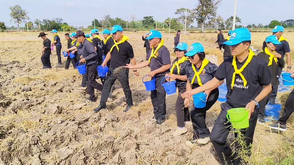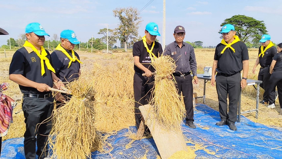 ในการนี้ ผวจ.ศรีสะเกษ ได้นำหัวหน้าส่วนราชการ ข้าราชการ อปท. กำนัน ผู้ใหญ่บ้าน สมาชิกจิตอาสา และประชาชนร่วมกิจกรรมการเก็บเกี่ยวข้าว ในโครงการปลูกข้าวในพื้นที่แปลงนาส่วนพระองค์ สมเด็จพระกนิษฐาธิราชเจ้า กรมสมเด็จพระเทพรัตนราชสุดา ฯ สยามบรมราชกุมารี จากนั้นได้ทำการนวดข้าวด้วยมือแบบโบราณ และร่วมกิจกรรมไถกลบตอซัง ก่อนจะที่ทำการหว่านเมล็ดพันธุ์พืชปอเทือง เพื่อบำรุงดิน เมื่อปอเทืองเริ่มออกดอกก็จะได้เริ่มทำการไถกลบปอเทืองอีกครั้งเพื่อเปลี่ยนเป็นปุ๋ยพืชสด ซึ่งจะช่วยเพิ่มไนโตรเจนและสารอาหารอื่นๆ ให้กับดินอีกด้วย