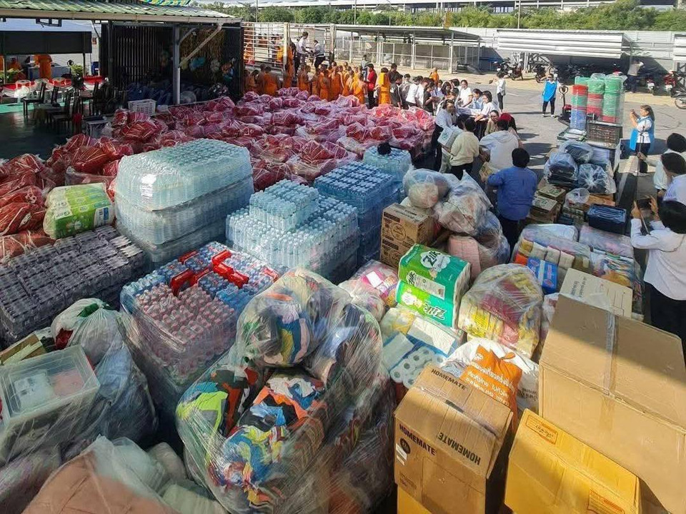 บรรยากาศ ณ จุดรวมการลำเลียงสิ่งของ มีพระสงฆ์ สามเณร คณะศิษย์วัด และเยาวชนอาสา ร่วมกันลำเลียงสิ่งของขึ้นรถคาราวาน ก่อนปล่อยขบวนความช่วยเหลือออกจากวัดพระธรรมกาย สิ่งของทั้งหมดมาจากการบริจาคของประชาชน ประกอบด้วยถุงยังชีพ 3,000 ชุด เรือช่วยเหลือ 8 ลำ เสื้อชูชีพ 100 ตัว เสื้อผ้าและของใช้จำเป็น รวมถึงน้ำดื่ม 500 มล. 1,000 ขวด โดยถุงยังชีพหนึ่งชุดบรรจุอาหารพร้อมบริโภค ข้าวสาร ปลากระป๋อง บะหมี่กึ่งสำเร็จรูป อาหารแห้ง และขนม เพื่อช่วยบรรเทาความเดือดร้อนของผู้ประสบภัยใน 6 จังหวัดภาคใต้ ได้แก่ จังหวัดสงขลา ปัตตานี พัทลุง สตูล ยะลา และนราธิวาส