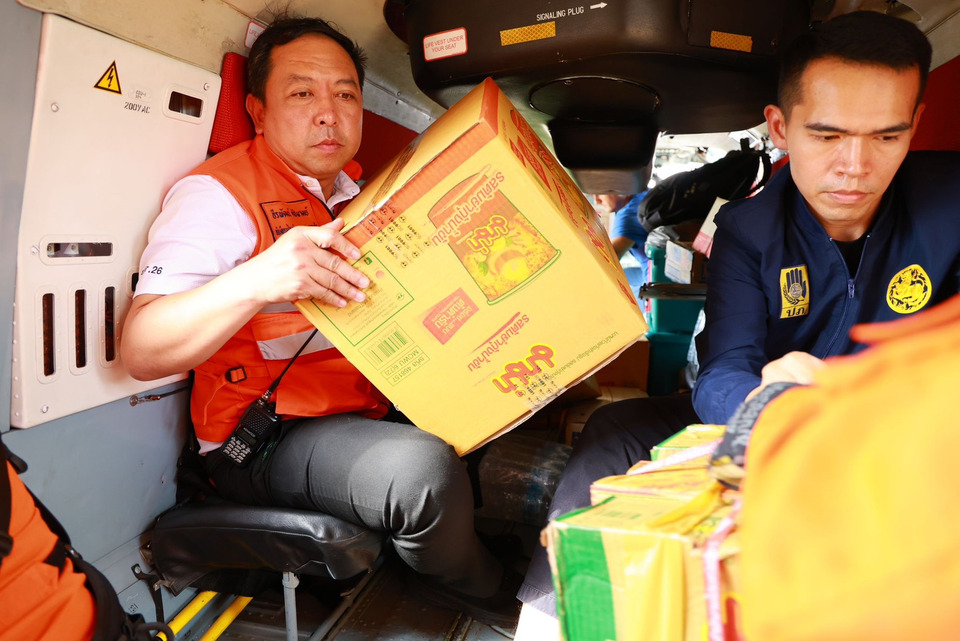 วันนี้ (27 พ.ย. 2568) เวลา 15.00 น. กรมป้องกันและบรรเทาสาธารณภัย (ปภ.) ร่วมกับกองทัพบก ลำเลียงและจัดส่งสิ่งของยังชีพทางอากาศช่วยเหลือผู้ประสบอุทกภัยในพื้นที่หาดใหญ่อย่างต่อเนื่อง โดยนายธีรพัฒน์ คัชมาตย์ อธิบดีกรมป้องกันและบรรเทาสาธารณภัย และนายธีรุตม์ ศุภวิบูลย์ผล อธิบดีกรมส่งเสริมการปกครองท้องถิ่น ได้ร่วมวางแผนแจกจ่ายอาหารและสิ่งของยังชีพ โดยเฮลิคอปเตอร์ป้องกันและบรรเทาสาธารณภัย KA-32 จำนวน 2 ลำ พร้อมทีมกู้ภัยอากาศยาน “The Guardian Team” บินส่งอาหารปรุงสุก น้ำดื่ม และเครื่องอุปโภคบริโภคให้แก่ประชาชนที่ได้รับผลกระทบจากมหาอุทกภัยอำเภอหาดใหญ่ รวม 400 ชุด
