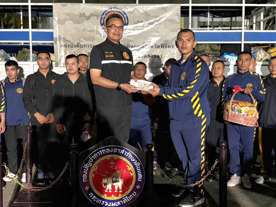ในการนี้ นาย กิติพล ผู้ว่าราชการจังหวัดพิจิตร ได้มอบปัจจัย รวมทั้งสิ่งของจำเป็น เพื่อบำรุงขวัญ และกำลังใจให้แก่สมาชิกกองอาสารักษาดินแดน พร้อมทั้งให้โอวาทแก่สมาชิกกองอาสารักษาดินแดนจังหวัดพิจิตร ทั้ง 36 นาย ให้ปฏิบัติหน้าที่ด้วยหัวใจจิตอาสา มีความมุ่งมั่นตั้งใจ ปฏิบัติหน้าที่อย่างเต็มความสามารถ พร้อมทั้งกำชับให้คำนึงถึงความปลอกภัยในการปฏิบัติหน้าที่ โดยถือว่าทุกคนเป็นตัวแทนของจังหวัดพิจิตรในการช่วยเหลือพี่น้องชาวหาดใหญ่ และขอให้เดินทางโดยสวัสดิภาพ