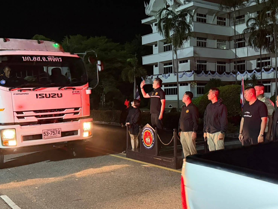วันที่ 28 พฤศจิกายน 2568 เวลา 20.00 น. ณ บริเวณลานหน้าศาลากลางจังหวัดพิจิตร นายกองเอก ธนียา นัยพินิจ ผู้บังคับการกองอาสารักษาดินแดนจังหวัดพิจิตร มอบให้นายกิติพล เวชกุล รองผู้บังคับการกองอาสารักษาดินแดนจังหวัดพิจิตร เป็นประธานในพิธีปล่อยแถวรถ 6 ล้อกระบะมีหลังคา และกำลังพลสมาชิกกองอาสารักษาดินแดน (อส.) เพื่อเดินทางไปปฏิบัติภารกิจช่วยเหลือผู้ประสบอุทกภัยในพื้นที่อำเภอหาดใหญ่ จังหวัดสงขลา โดยมีเจ้าหน้าที่ผู้เกี่ยวข้อง ร่วมในพิธีเพื่อส่ง อส.จำนวน 36 นาย ไปปฏิบัติหน้าที่ช่วยเหลือและบรรเทาความเดือดร้อนพี่น้องประชาชนจากเหตุอุทกภัยในพื้นที่อำเภอหาดใหญ่ จังหวัดสงขลา
