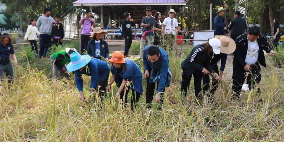 นางกันดาธรณ์ ตะราช ผู้อำนวยการโรงเรียนพุทไธสง อ.พุทไธสง จ.บุรีรัมย์ เป็นประธานเปิดการจัดกิจกรรม ‘กินข้าวท่ง ลงแขกฮ่วมแฮง แญงฮอยพ่อ สวน พ.ส. พอเพียง’ ซึ่งโรงเรียนพุทไธสง จัดขึ้น ที่ บริเวณสวน พ.ส. พอเพียง ของโรงเรียน โดยมีคณะครู นักเรียน ผู้ปกครอง และชาวบ้านในพื้นที่ ร่วมกิจกรรม