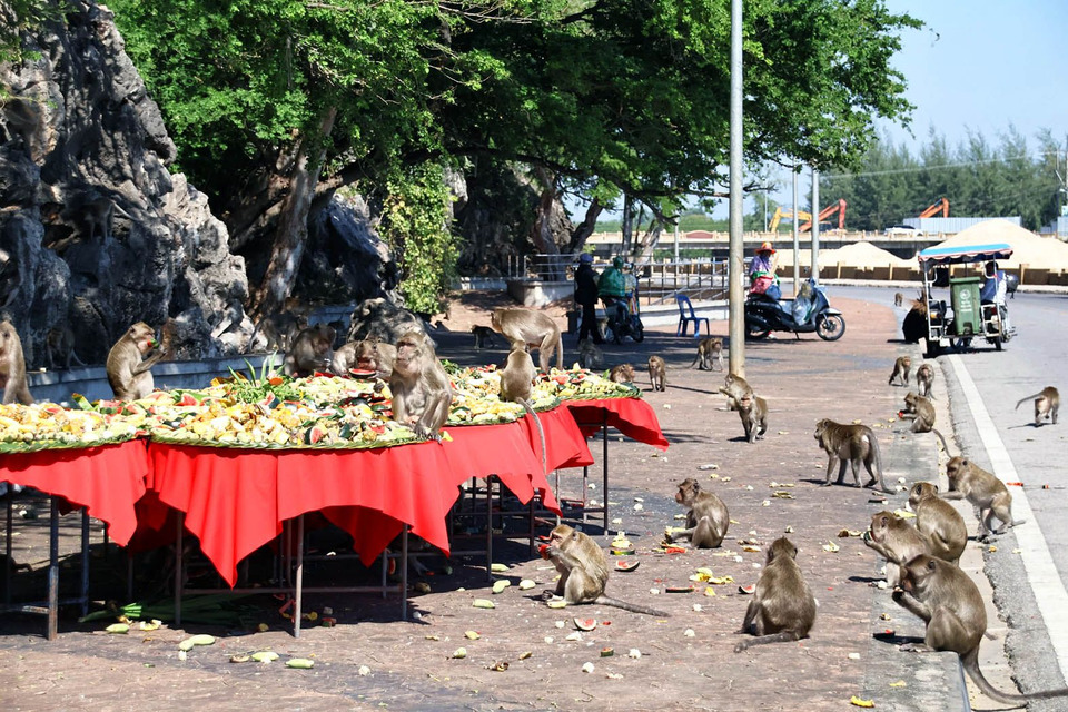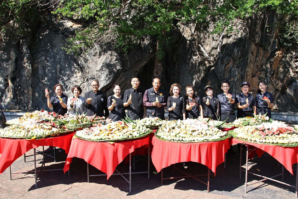 นายสิทธิชัย สวัสดิ์แสน กล่าวว่า โต๊ะจีนลิงที่นำมาเลี้ยงในวันนี้ได้รับการสนับสนุนจากรองประธานหอการค้าจังหวัดฯ และบริษัทนเรศวรร์อินเตอร์กรุ๊ป ประกอบด้วยผักและผลไม้ต่าง ๆ อาทิ กล้วย, แตงโม, สับปะรด, ข้าวโพด จำนวนกว่า 10 กระจาด ซึ่งมีลิงน้อยใหญ่จำนวนหลายร้อยตัวต่างลงจากเขามาหยิบผักและผลไม้ที่จัดไว้ให้กันกินเป็นระยะ ๆ ด้วยความเอร็ดอร่อย โดยการเลี้ยงโต๊ะจีนลิงในครั้งนี้ เนื่องจากในขณะนี้ที่ จ.ประจวบฯ มีการจัดงาน “ดินของพ่อ สานต่อของดีคีรีขันธ์” ระหว่างวันที่ 29 พ.ย.- 8 ธ.ค.68 รวม 10 วัน ที่เวทีกลาง สวนสาธารณะเฉลิมพระเกียรติ ร.9 หน้าศาลากลางจังหวัดประจวบฯ จึงทำให้ลิงบางส่วนกลัวไม่กล้าลงมาหาอาหารบริเวณด้านล่างเขาช่องกระจกตามปกติ จึงได้มีความคิดจัดเลี้ยงโต๊ะจีนลิงเป็นการแสดงความเมตตาและความห่วงใยต่อสัตว์ในบริเวณนั้น และเพื่อให้ลิงมีอาหารกินโดยไม่อดอยากหิวโหยระหว่างช่วงมีการจัดงานดังกล่าว