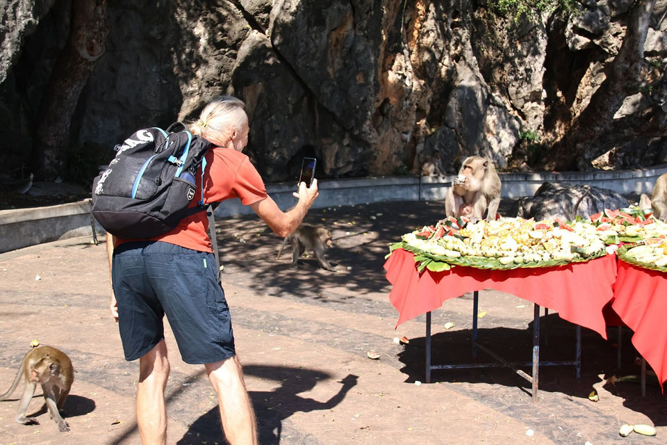 วันที่ 30 พ.ย.68 ที่บริเวณถนนเลียบชายหาด เขาช่องกระจก อำเภอเมืองประจวบฯ นายสิทธิชัย สวัสดิ์แสน ผู้ว่าราชการ จ.ประจวบฯ พร้อมด้วย พญ.บุษกร สวัสดิ์แสน ประธานแม่บ้านมหาดไทยจังหวัด ร่วมจัดเลี้ยงโต๊ะจีนลิงเขาช่องกระจก โดยมี พันจ่าเอก สาคร สิทธิศักดิ์ รองผู้ว่าราชการจังหวัดฯ นายอำนาจ มณีแดง รองประธานหอการค้าจังหวัดฯ หัวหน้าส่วนราชการ และนักท่องเที่ยวทั้งชาวไทยและต่างชาติต่างถ่ายภาพเก็บไว้ดูด้วยความสนใจ