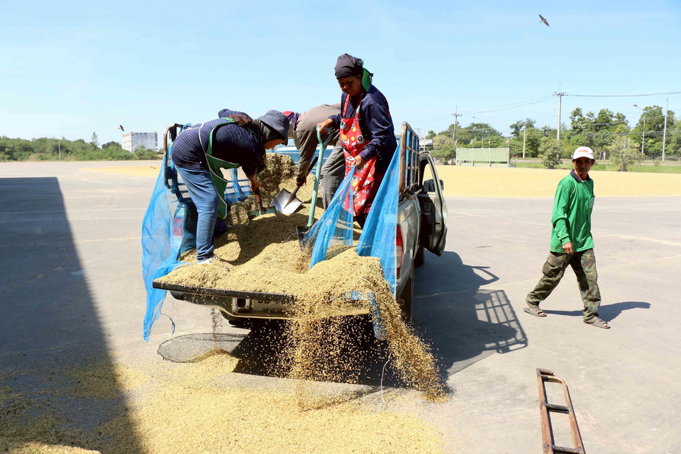 บรรยากาศชาวนานำข้าวเปลือกมาขาย ที่ตลาดกลางข้าวและพืชไร่กาฬสินธุ์ ช่วงปลายฤดูเก็บเกี่ยวยังมีความคึกคัก เนื่องจากราคาปรับสูงขึ้นอีกตันละ 5,000 บาท โดยข้าวเหนียวจากเดิมตันละ 6,000 บาท เป็นตันละ 11,000 บาท ขณะที่ข้าวจ้าว ปรับราคาสูงขึ้นถึงตันละ 16,000 บาท