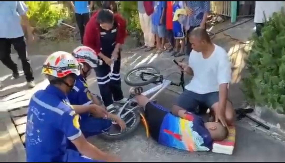 ที่เกิดเหตุเป็นถนนศรีภู ต.นางรอง อ.นางรอง พบน้องโอ อายุ 8 ปี นักเรียนชั้น ป.2 นอนล้มคู่กับรถจักรยาน ในสภาพน้องให้ครวญครางขอความช่วยเหลือ หน่วยกู้ภัยตรวจสอบพบว่าขาไปขัดกับที่ปั่นลักษณะผิดท่า จึงเอาเครื่องมือขันเบาะนั่งออกแล้วดึงขาออกได้อยางปลอดภัย แต่มีรอยช้ำบริเวณน่องเนื่องจากแรงบีบอัด นำตัวส่งโรงพยาบาลนางรอง