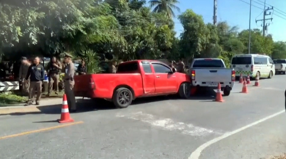 จากนั้น นายณัฐพงษ์ สงวนจิตร ผวจ.สุพรรณบุรี, พ.ต.อ.สมพร พุกหอม รอง ผบก.สุพรรณบุรี ,นายกัมปนาท กลิ่นเสาวคนธ์ ปลัดจังหวัดสุพรรณบุรี เดินทางไปตรวจสอบที่เกิดเหตุ พบรถกระบะโตโยต้า แคป สีแดง ทะเบียนนครศรีธรรมราช สภาพรถด้านหน้าพังยับเยิน ไกล้กันยังพบรถกระบะตู้ทึบ โตโยต้า รีโว สีดำ ของพลเมืองดี ถูกชนพังยับ และรถเจ้าหน้าที่ตำรวจสายตรวจบ้านสระ ที่จอดสกัดรถขนยาถูกชนด้านหน้าพังยับเยิน นอกจากนี้ในที่เกิดเหตุยังพบผู้บาดเจ็บเป็นหญิงหนึ่งรายได้ถูกรถชนได้รับบาดเจ็บเล็กน้อย ขณะที่จะขับรถเข้าบ้านเจ้าที่จึงได้นำตัวส่งโรงพยาบาลสามชุก
